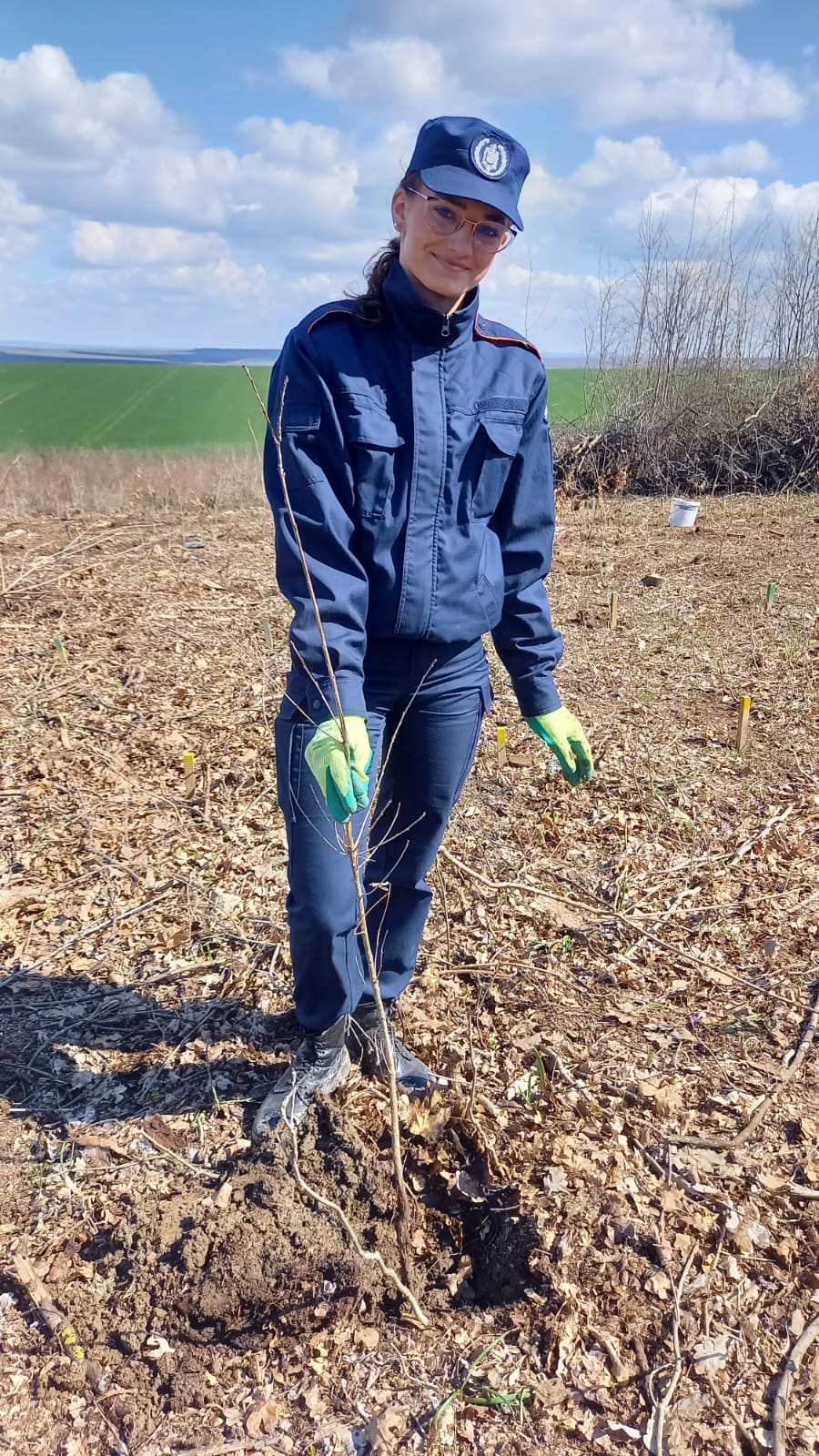 ”Vremea frumoasă și natura care revine la viață la începutul primăverii au constituit cadrul propice pentru plantarea de arbori din mai multe specii, în zona Cantonului Coștiugeni, împreună cu specialiștii silvici, care au asigurat expertiza, puieții și uneltele necesare plantării. Pentru Giorgiana și colegii ei, acesta este primul lor stagiu de practică, în care vor căpăta competențe în specializarea pază și protecție instituțională”, a declarat Dan Izotov, purtătorul de cuvânt al Inspectoratului de Jandarmi Județean.