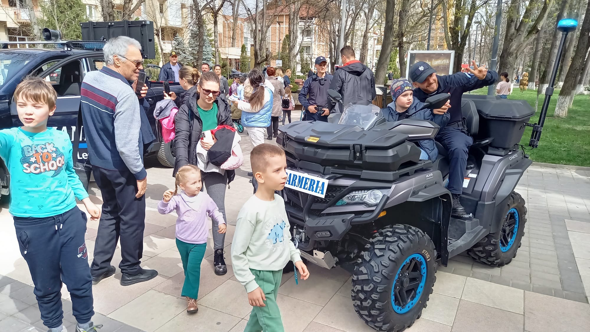 Jandarmii au mai prezentat autospecialele folosite în misiuni, însă au fost distribuite și pliante cu oferta de școlarizare pentru Școala Militară de Subofițeri Jandarmi Fălticeni și informații suplimentare pentru tinerii interesați de o carieră militară în Jandarmeria Română.