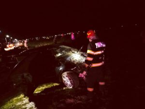 FOTO Accident feroviar, în această seară, la Botoșani. O mașină a fost lovită de tren; două tinere au fost rănite