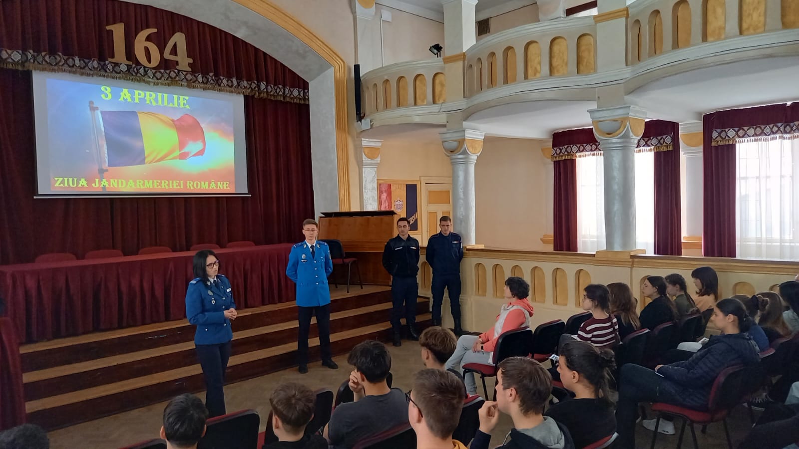 Aula Magna a Colegiului Național ,,A.T. Laurian” Botoșani a reprezentat ieri dimineață cadrul propice desfășurării unei activități de informare a elevilor clasei a X-a B, cu privire la oportunitățile unei cariere militare în Jandarmeria Română.