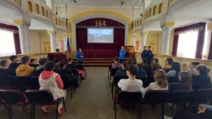 Împreună cu prof. Elena Alecsa, elevii au avut prilejul să afle informații despre instituțiile militare de învățământ care școlarizează ofițeri și subofițeri jandarmi, respectiv Academia de Poliție ,,Alexandru Ioan Cuza” București, Școala Militară de Subofițeri Jandarmi Fălticeni și Școala Militară de Subofițeri Jandarmi Drăgășani.