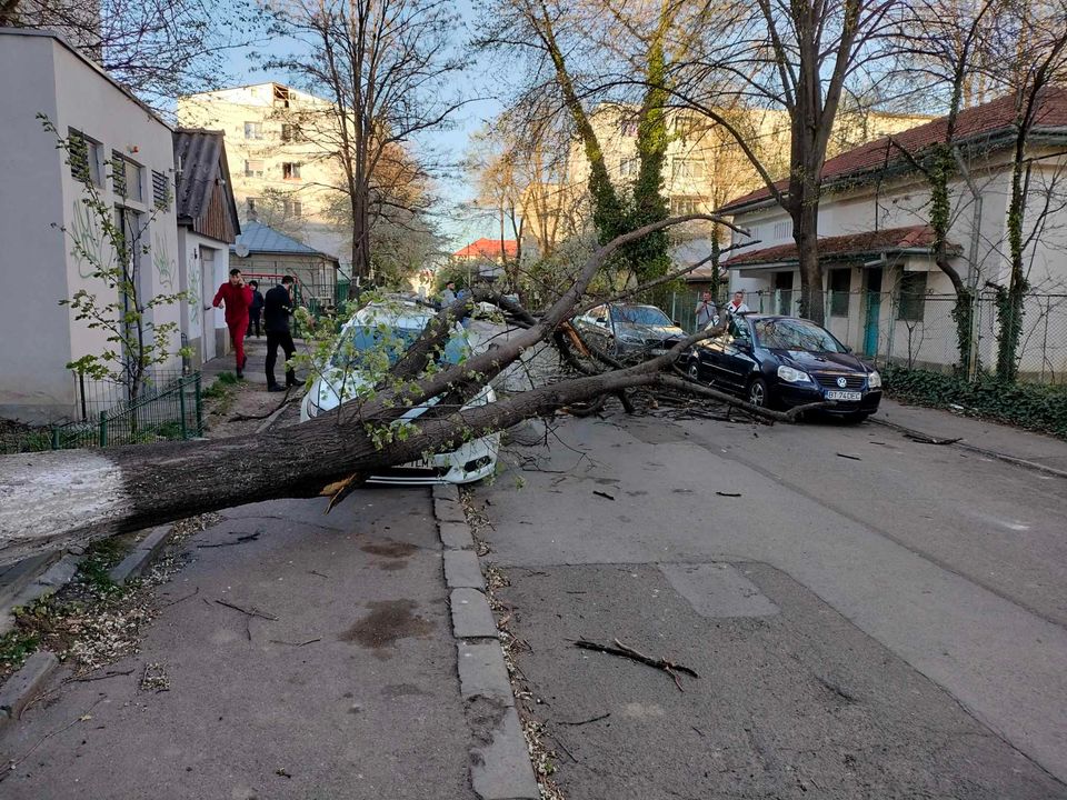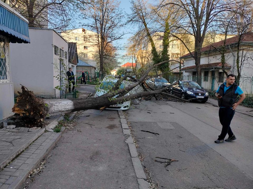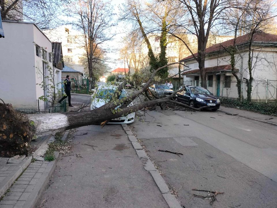 Vântul continuă să facă probleme la Botoșani. Marți după-amiază, un copac a fost pur și simplu smuls de vânt și a căzut peste două mașini, pe strada Col Tomoroveanu, lângă turnul de apă. La fața locului au fost chemați pompierii.