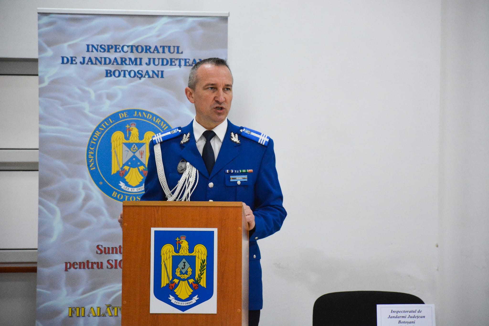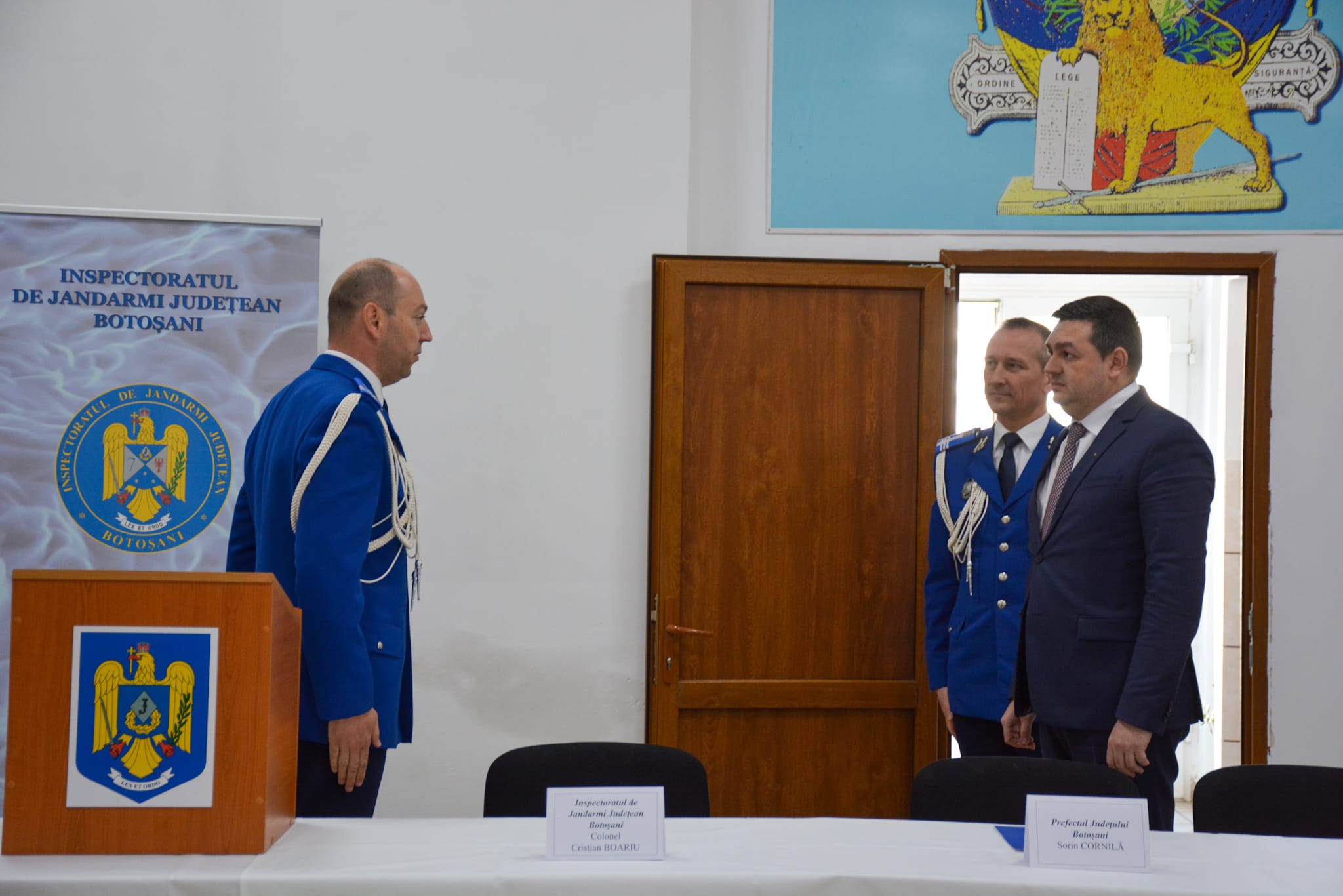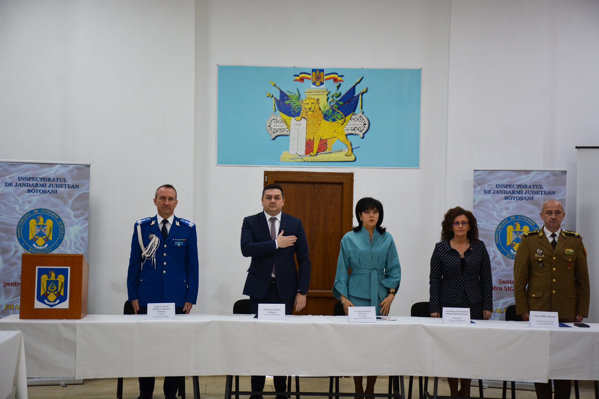 Manifestarea festivă dedicată acestui moment istoric s-a desfășurat la sediul Inspectoratului de Jandarmi Județean Botoșani, în prezența lui Sorin Cornilă – prefectul județului Botoșani, Doina Elena Federovici – președintele Consiliului Județean Botoșani, Cristina Breșug – președintele Autorității Teritoriale de Ordine Publică și șefilor instituțiilor publice cu care inspectoratul cooperează în atingerea obiectivelor specifice.
