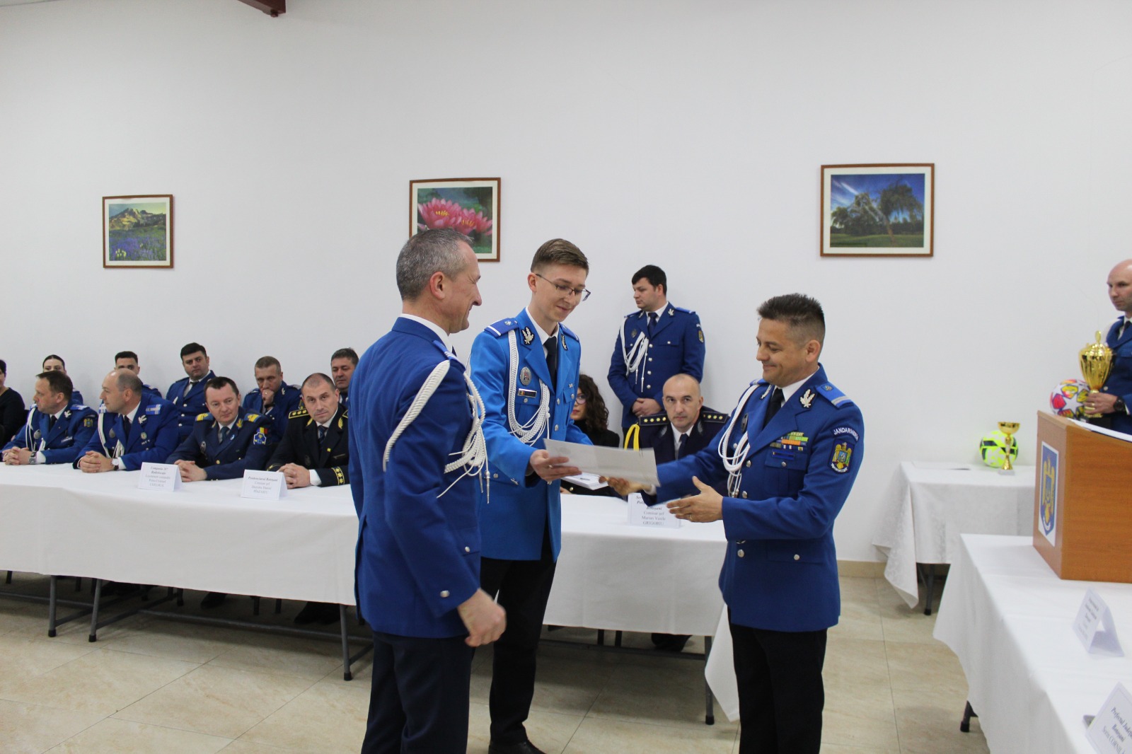 Doi ofițeri și opt subofițeri de la Jandarmeria Botoșani au fost înaintați în grad de Ziua Jandarmeriei, înaintea expirării stagiului minim în grad. Tot acum au fost premiați și câștigătorii concursurilor sportive organizate premergător sărbătoririi Zilei Jandarmeriei Române, cu sprijinul Asociației Internaționale a Polițiștilor – Regiunea 2 Botoșani și Asociației Sportive Prutul.