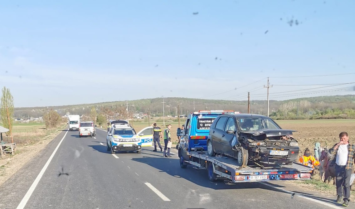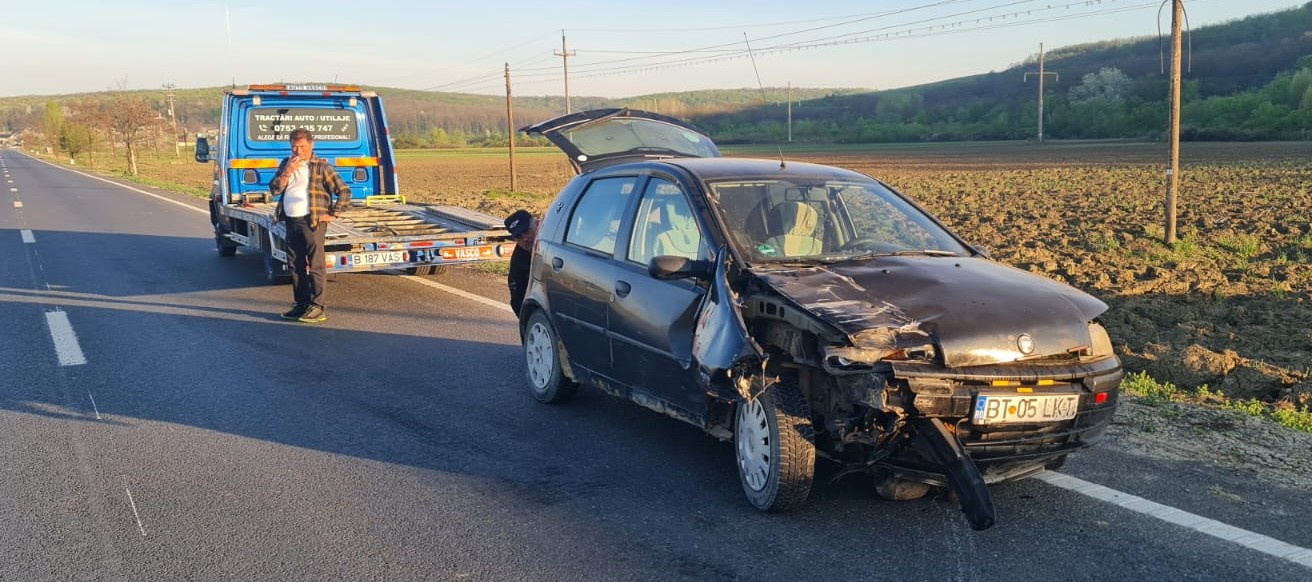 Un accident rutier a avut loc, miercuri dimineaţă, pe drumul european E58, pe raza localităţii Copălău. O maşină a ieşit în decor după ce a acroşat o căruţă.