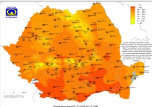 Temperatura aerului a fost, la aceeași oră, de 29 de grade Celsius la Darabani, 28 de grade la Botoșani și 27 de grade la Stânca.