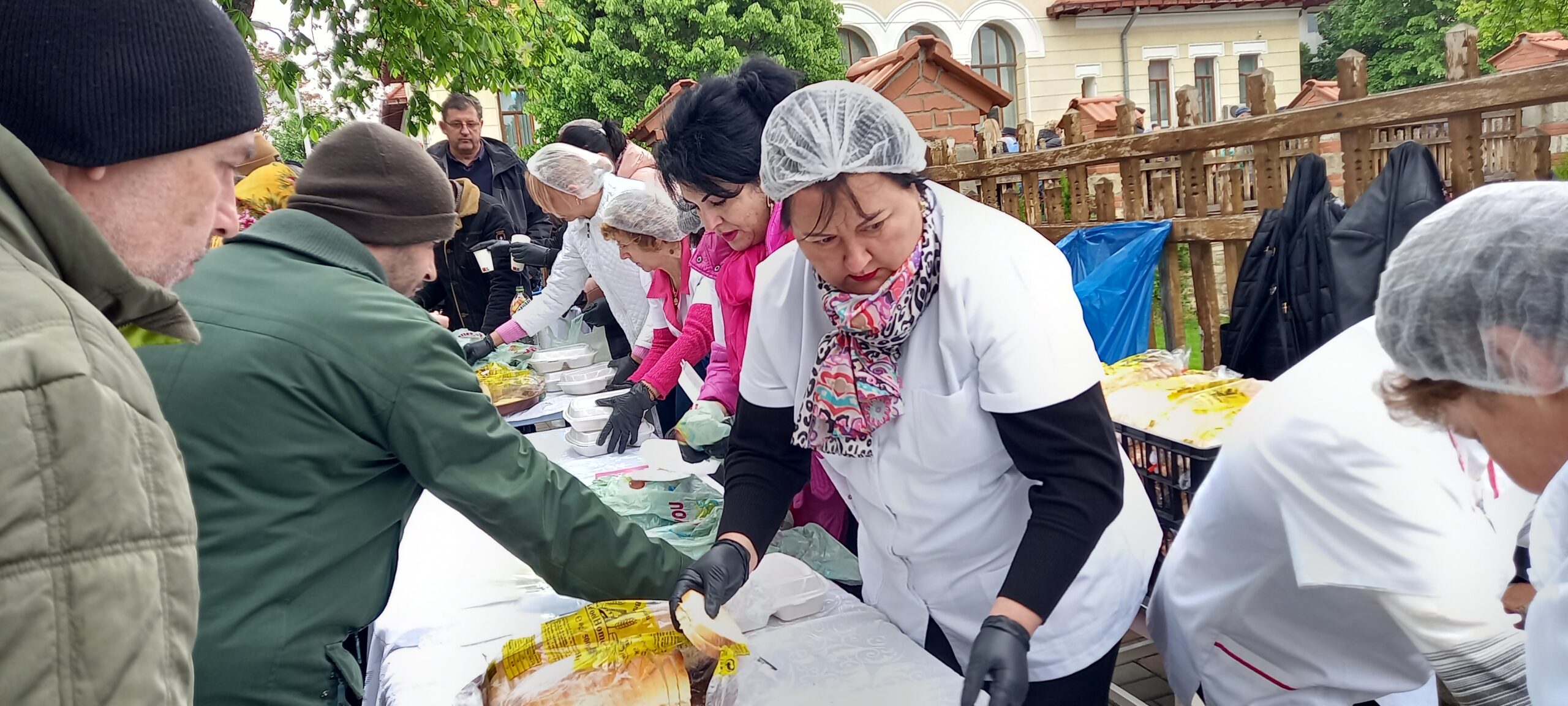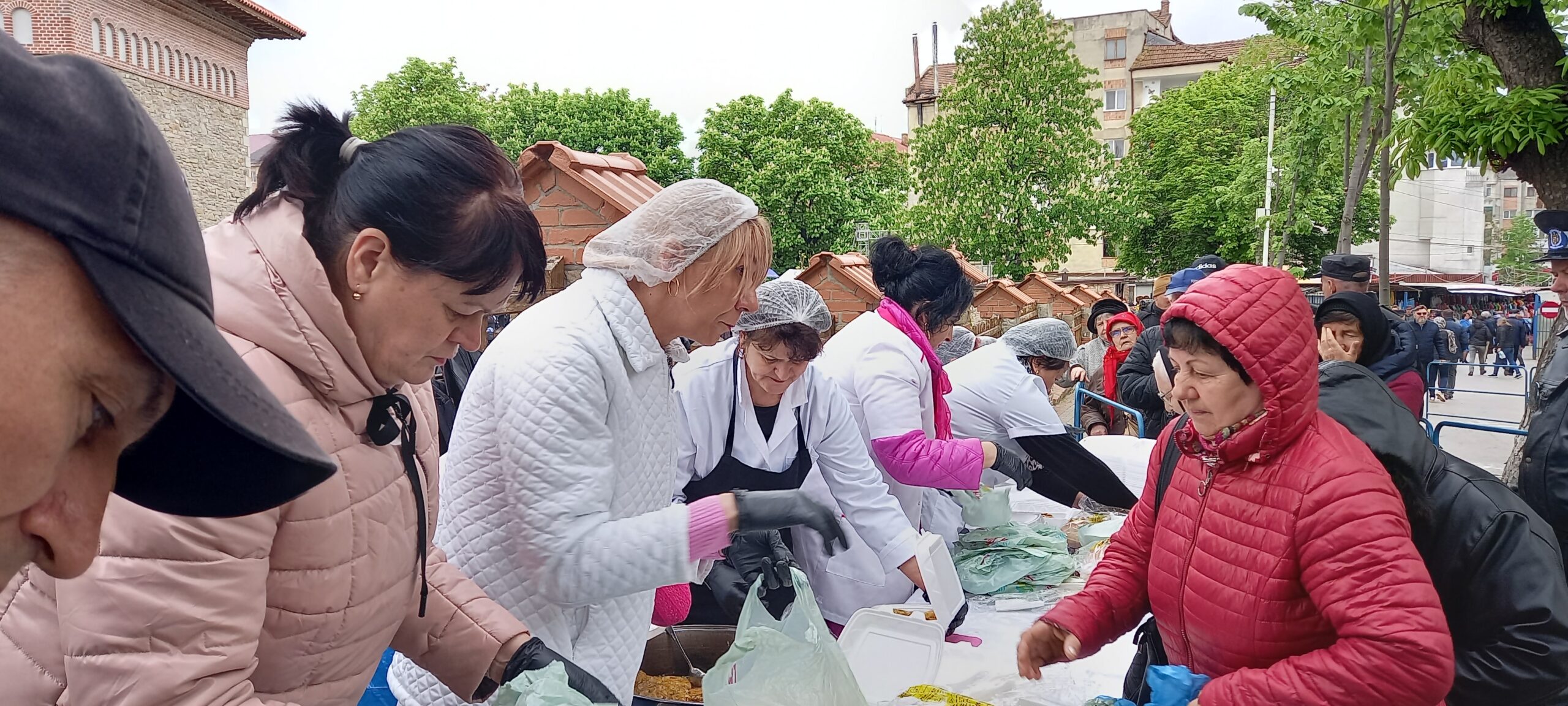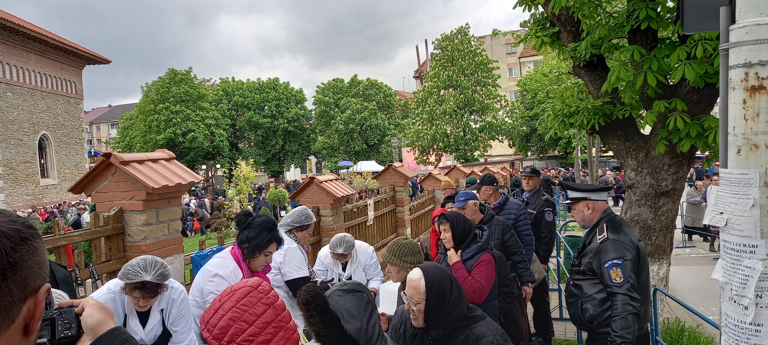 Bucatele oferite au fost preparate la Cantina de ajutor social a primăriei. Jandarmii, dar și polițiștii locali au asigurat ordinea pentru ca oamenii să nu se îmbrâncească.