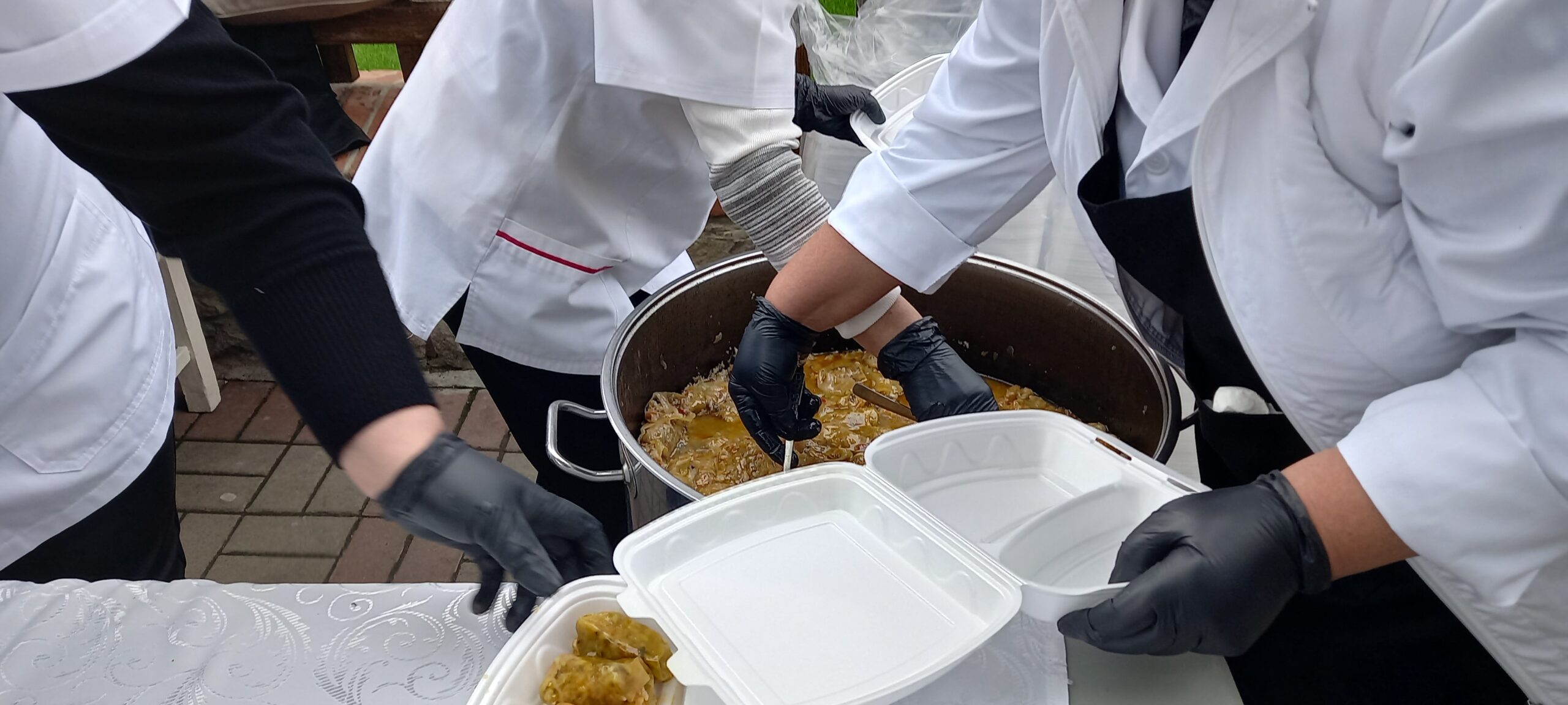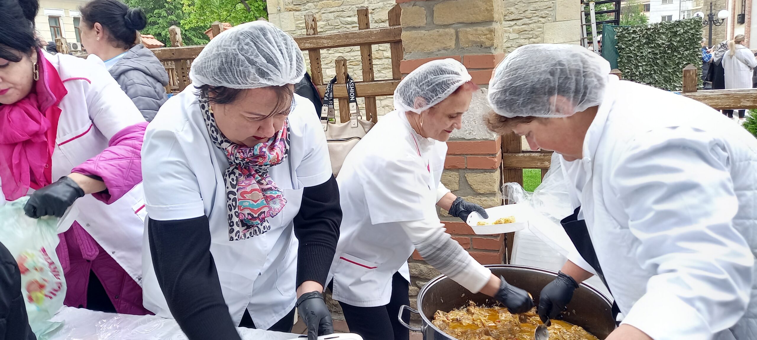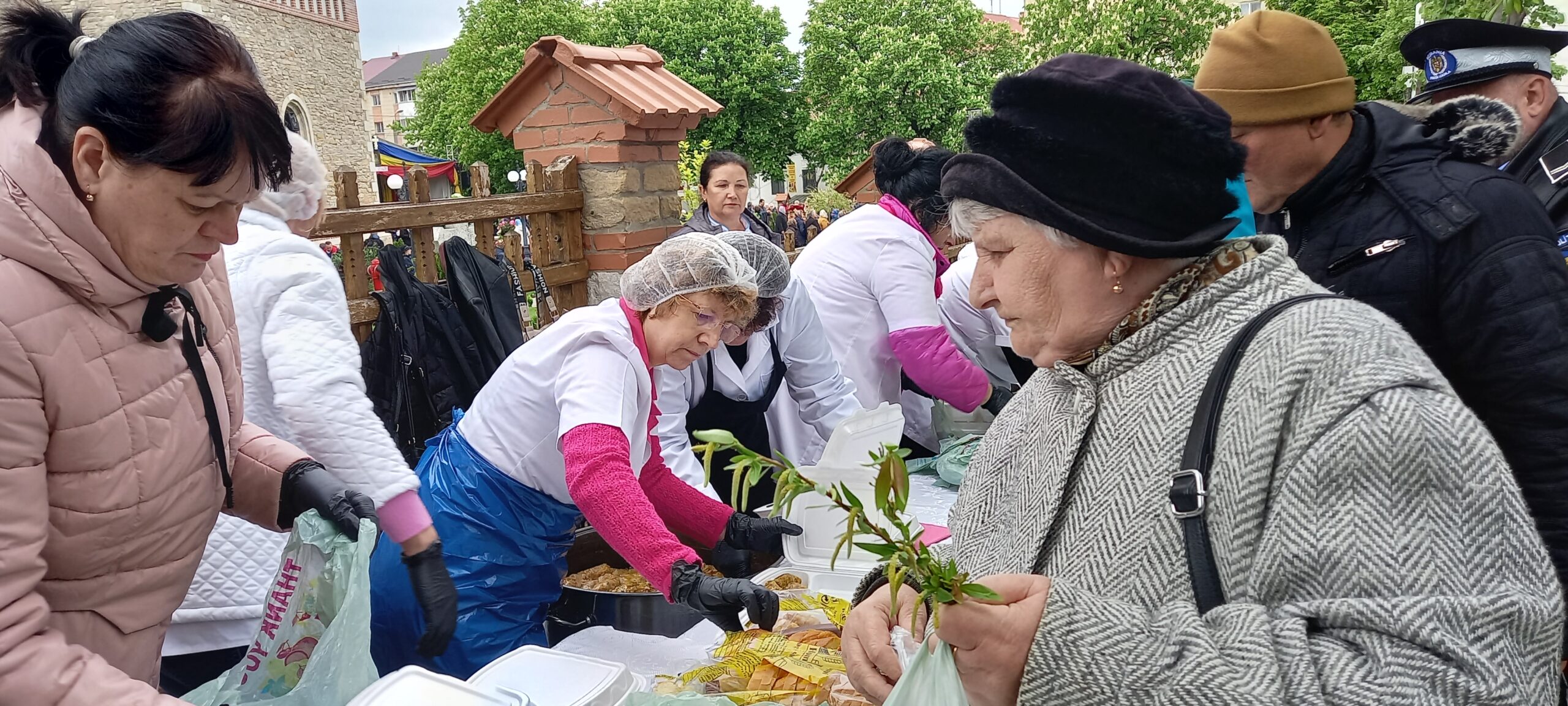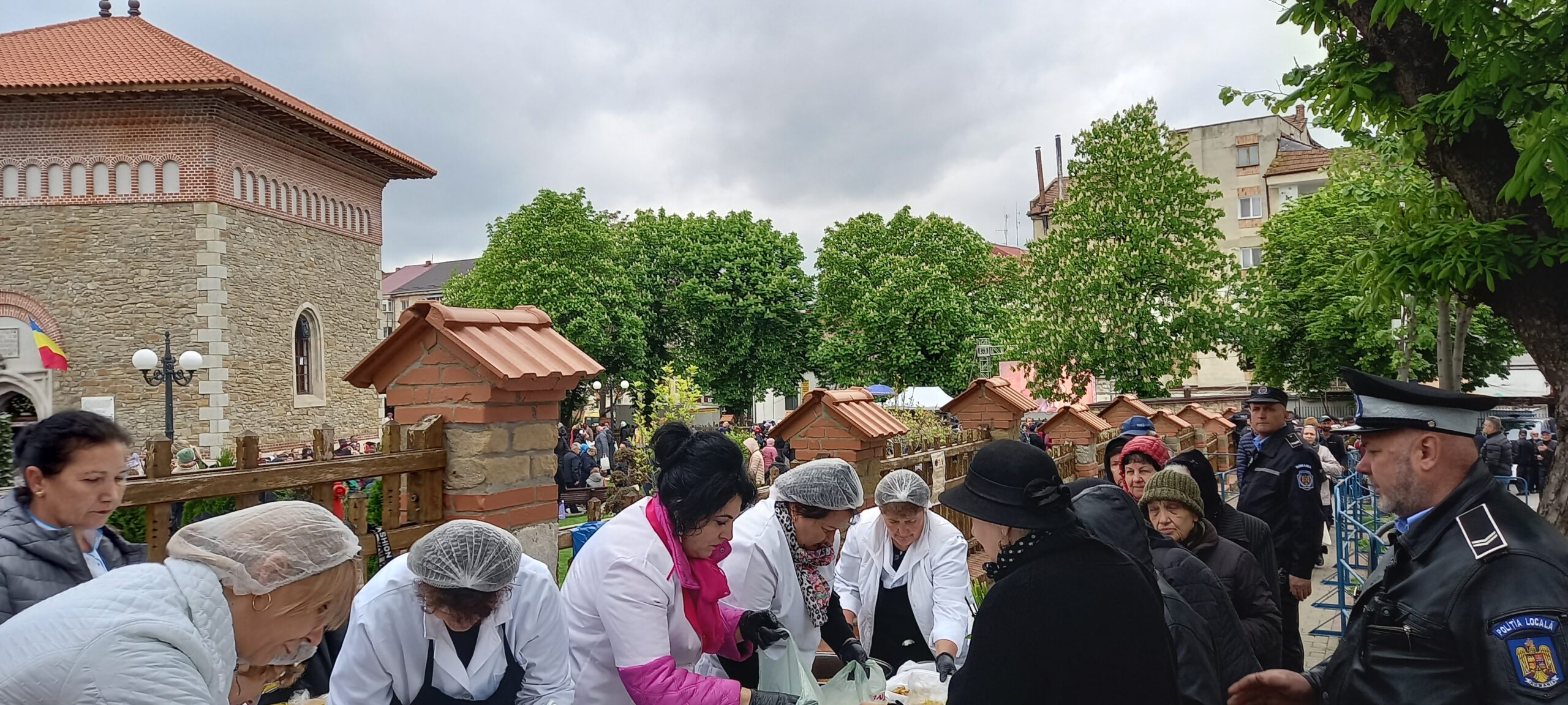 Bucatele oferite au fost preparate la Cantina de ajutor social a primăriei. Jandarmii, dar și polițiștii locali au asigurat ordinea pentru ca oamenii să nu se îmbrâncească.