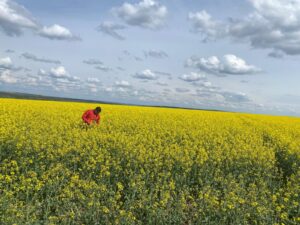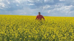 Îi place câmpul, se simte foarte bine când este acolo, iar per total este foarte sănătos pentru trup și suflet. Pentru că este sezonul culturii de rapiță, am vrut să vedem și dacă se anunță un an bun pentru această cultura, în ferma de la Broscăuți.