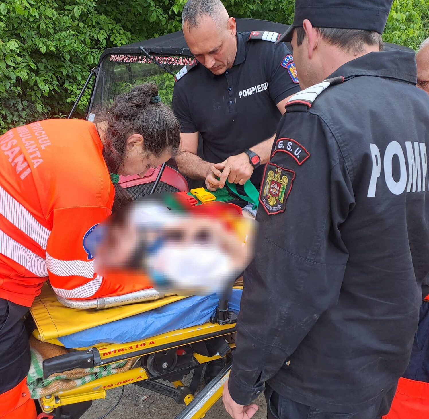 Un echipaj din cadrul Detașamentului de Pompieri Botoșani, cu o șenilata a ajuns, în cel mai scurt timp, la tânăra rănită și a adus-o, în siguranță, la ambulanța SAJ. Ulterior, pacienta a ajuns la spital pentru îngrijiri medicale de specialitate.