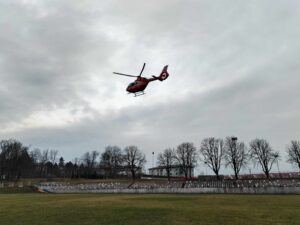 Aeronava SMURD a aterizat pe stadionul municipal Dorohoi pentru a-l prelua pe bolnav. Pompierii au intervenit pentru a asigura măsurile la aterizare și decolare.
