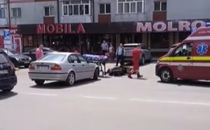 Un accident rutier a avut loc, miercuri, în municipiul Botoșani. Un bărbat a ajuns la spital după un impact între o motocicletă și un BMW.