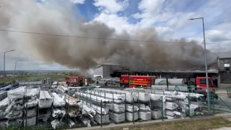 VIDEO Incendiu violent la o fabrică de tâmplărie PVC aproape de Botoşani. Populaţia, avertizată prin Ro-Alert