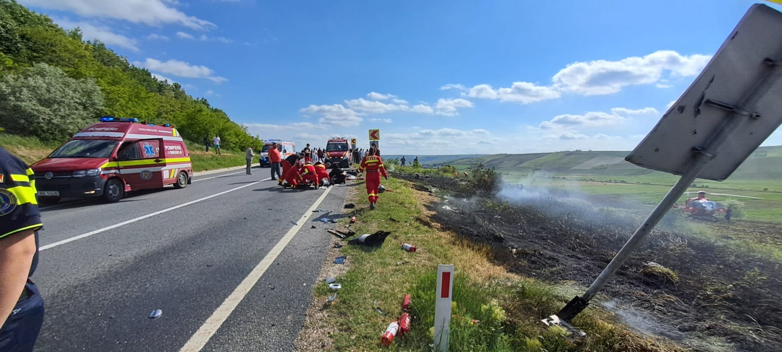 Potrivit reprezentanților ISU Vaslui, în accident au fost implicate două motociclete și un autoturism. În urma impactului dintre una dintre motociclete și autoturism, ambele au fost cuprinse de flăcări. Incendiul s-a extins și la vegetația din zonă. Cea de-a doua motocicletă a încercat să evite impactul, însă nu a reușit.