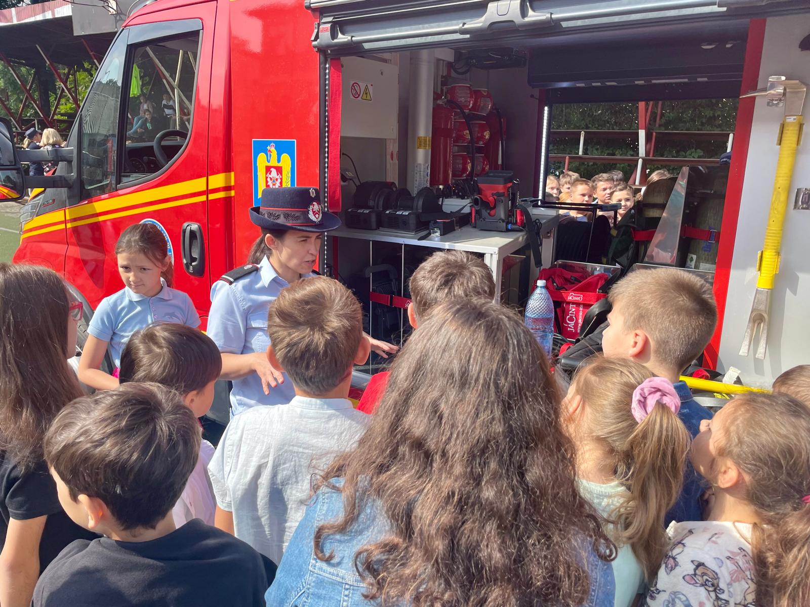 Copiii au aflat și în ce situații pompierii intervin cu autospecialele de stingere și cum se folosește fiecare accesoriu. Cei mai curajoși au testat presiunea furtunelor ca și când ar fi stins un incendiu.