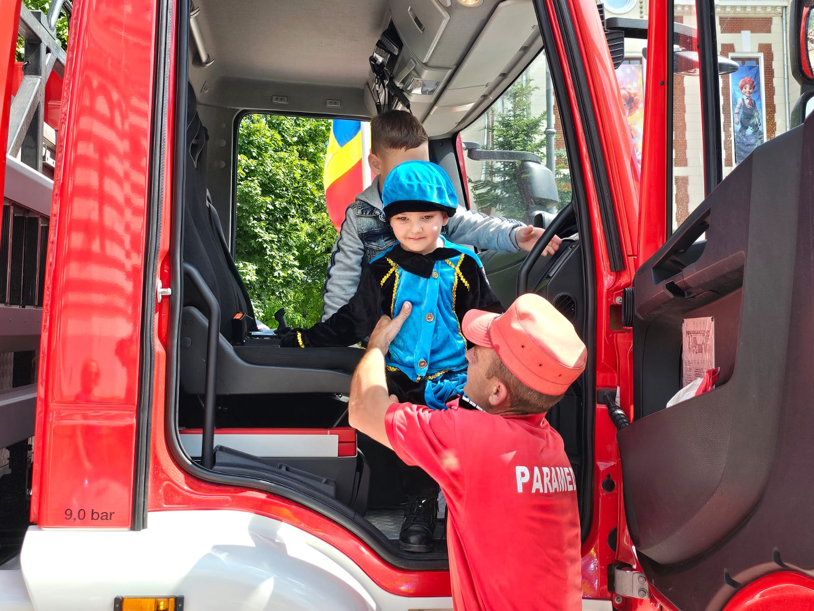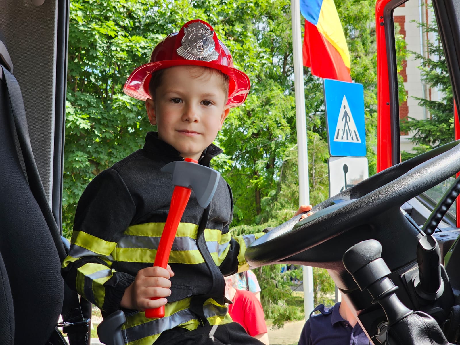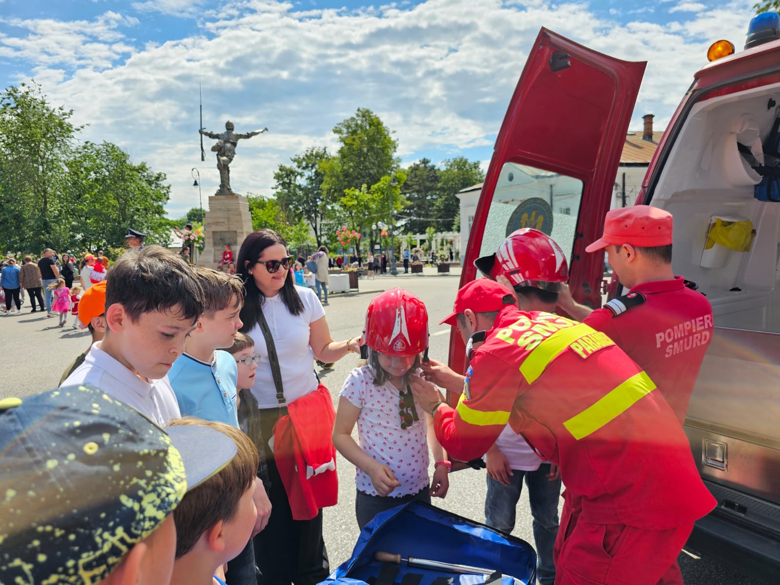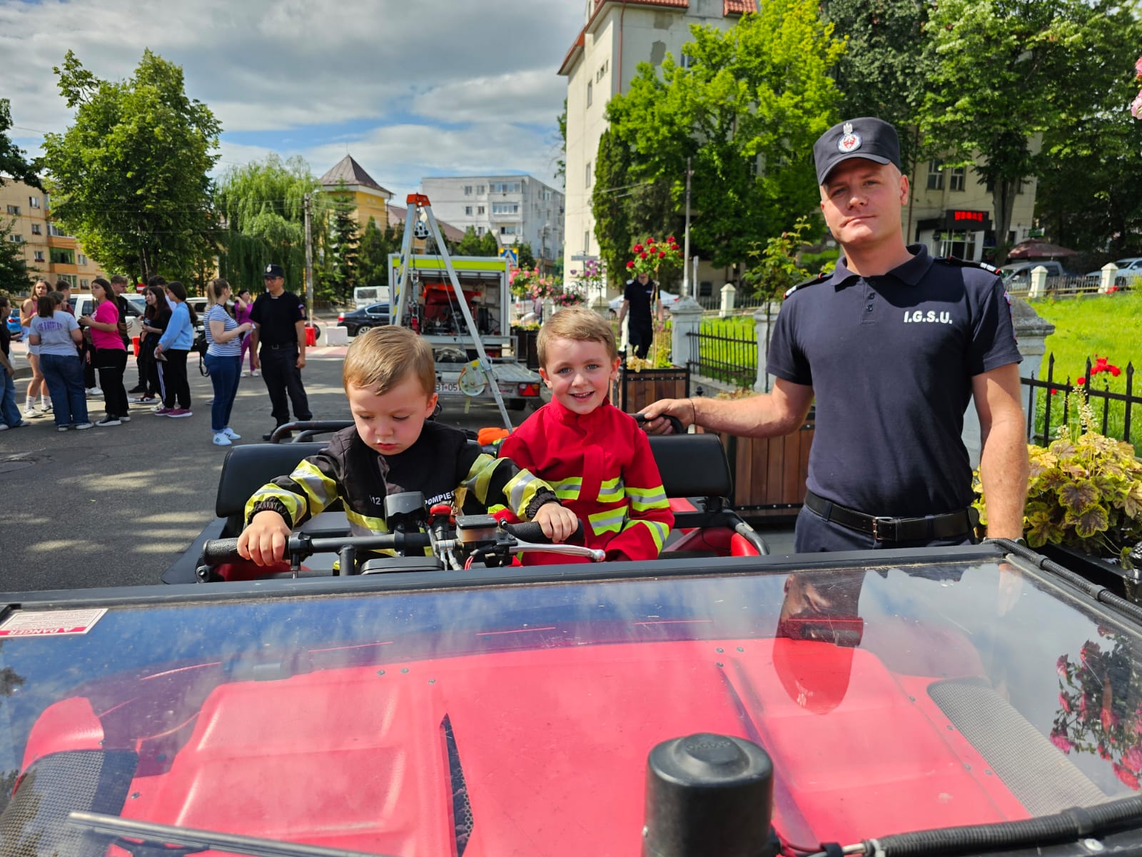 Vizibil emoţionaţi, copiii au îmbrăcat haina de pompier, au probat kit-ul de salvare din fântâni, au urcat în autospecialele de intervenţie și s-au plimbat cu șenilata.