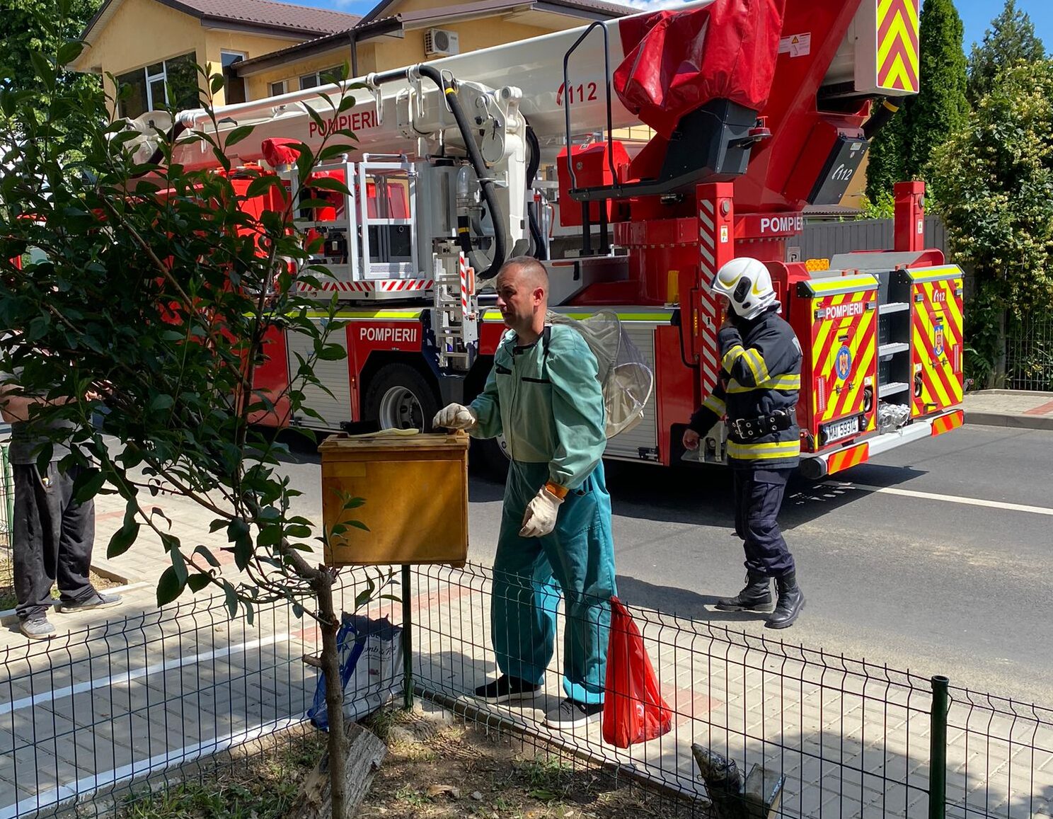 Intervenție neobișnuită a pompierilor și jandarmilor, vineri, într-un cartier din Botoșani.Oamenii care locuiesc în zonă au sunat la 112 din cauza unui roi de albine.