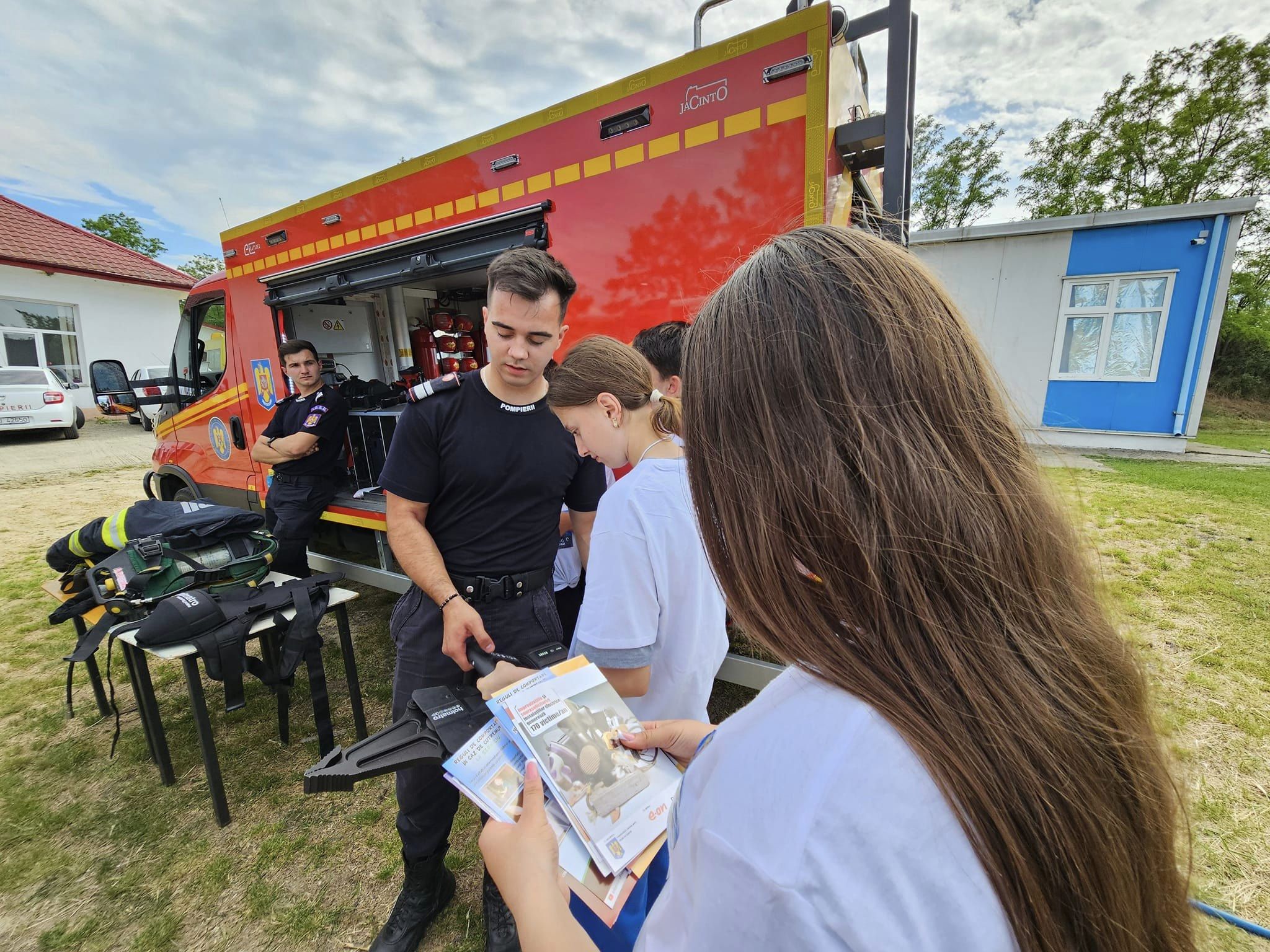 Aceștia au răspuns invitației de a participa la proiectul „Tabăra Prieteniei”, organizat de cele trei instituții de învățământ, pentru a-i ajuta pe tineri să-și aleagă o carieră. Pompierii le-au împărtășit experiențele trăite de-a lungul anilor, le-au vorbit despre avantajele și riscurile acestei meserii și le-au explicat pașii ce trebuie urmați pentru a putea îmbrăca haina de salvator.