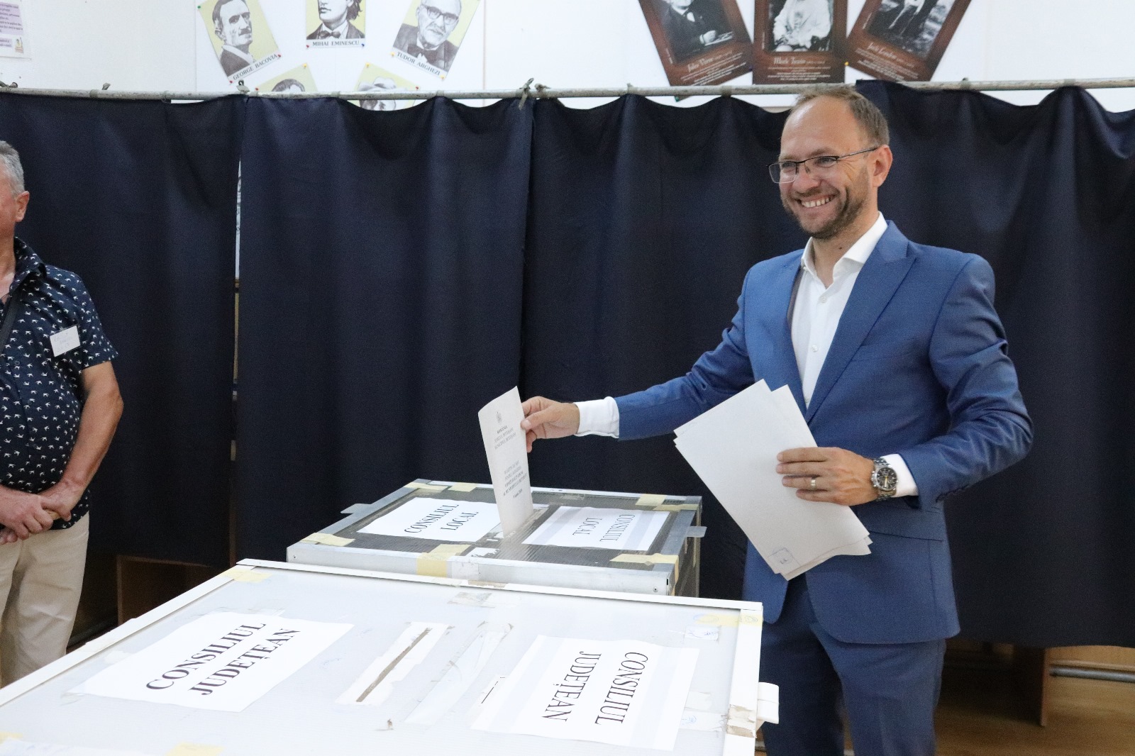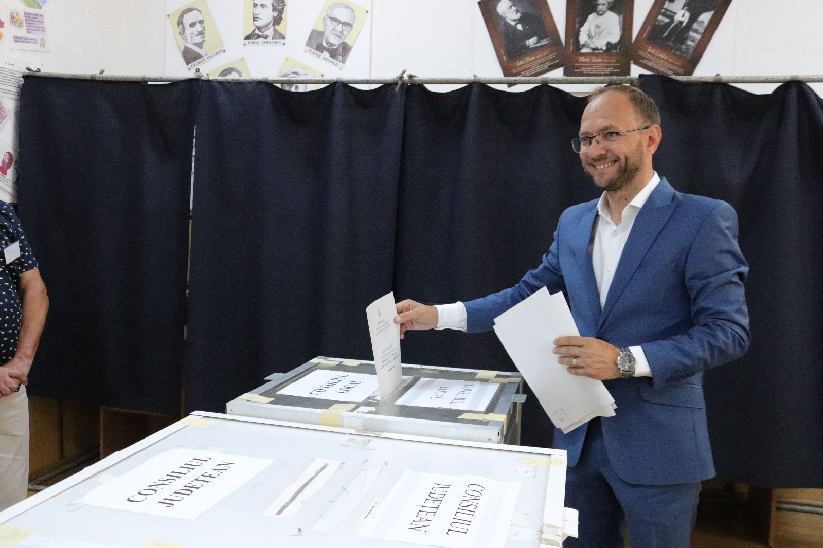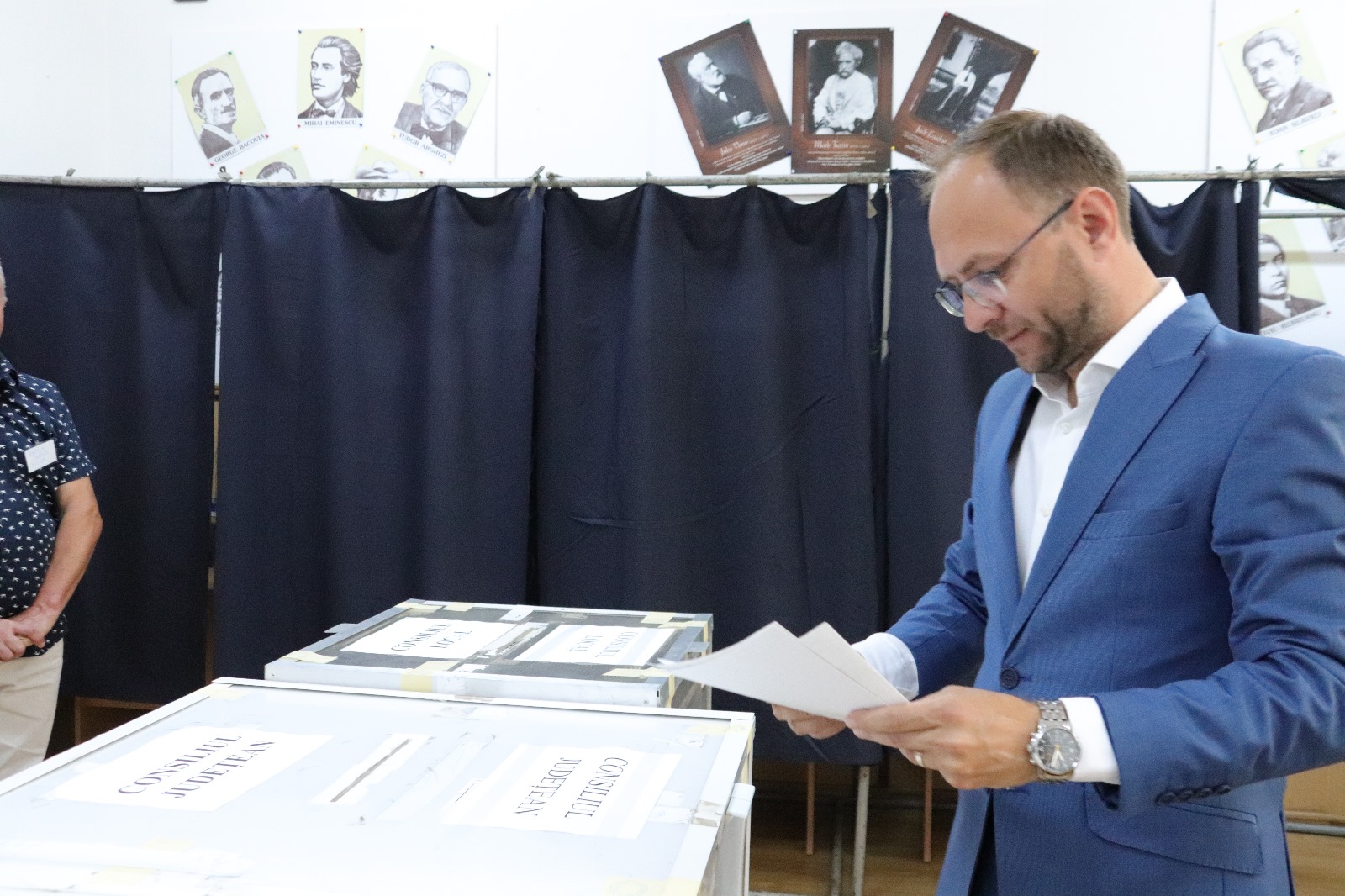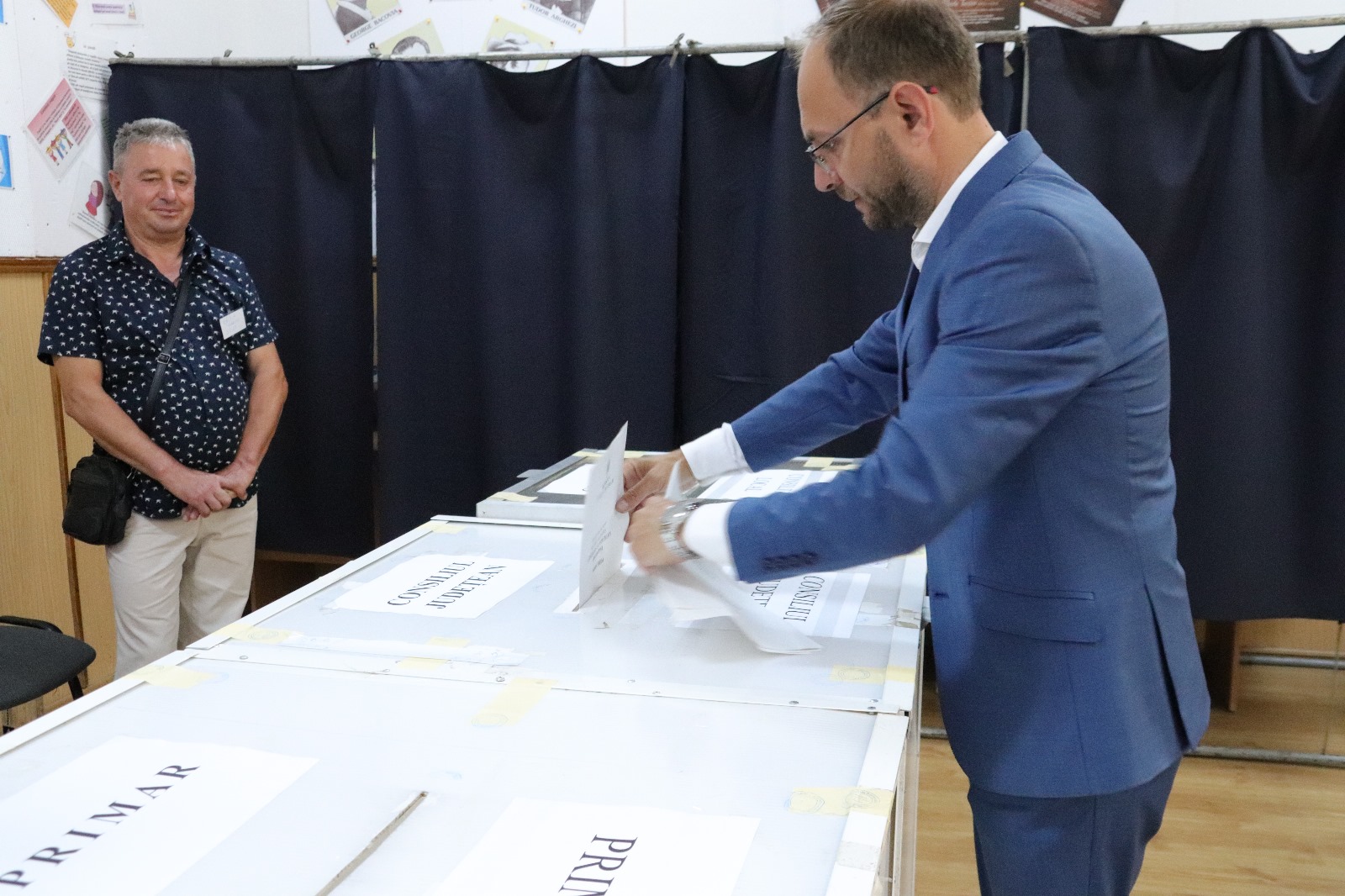 Primarul municipiului Botoșani, Cosmin Andrei, a votat, duminică, alături de soția sa, la secția de votare amenajată la Școala Gimnazială nr. 13 din municipiul Botoșani.