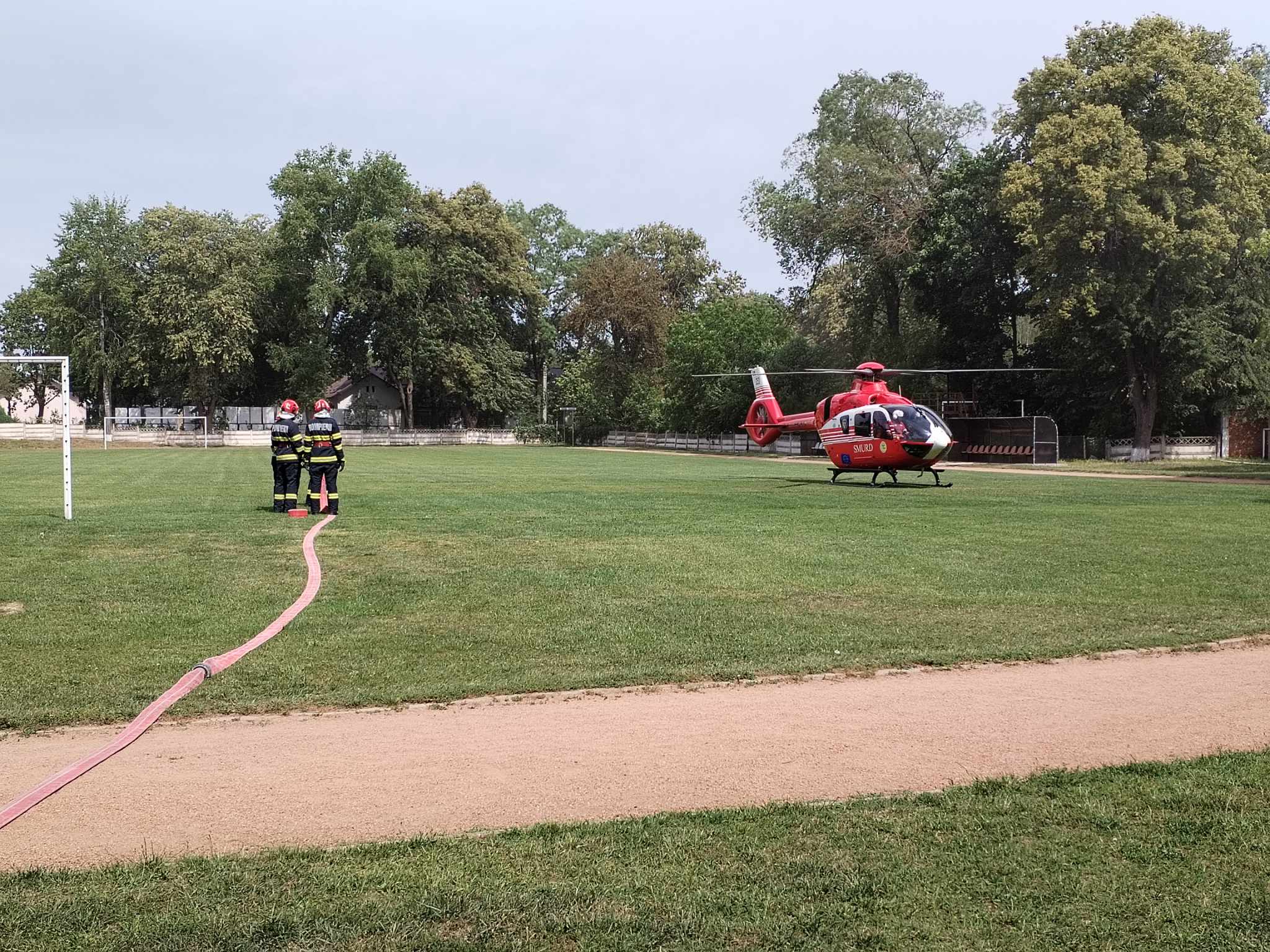 Medicii botoșăneni au decis transferul acestuia pe cale aeriană la o clinică de specialitate. Pompierii au intervenit pentru a asigura măsurile la aterizarea și decolarea elicopterului SMURD.