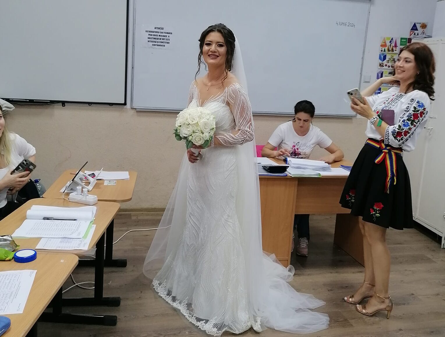 FOTO O mireasă din Botoșani a „fugit” de la propria nuntă ca să voteze. Pentru câteva clipe, Raluca a înlocuit buchetul cu ștampila de vot