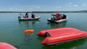 Acesta este scenariul unui exercițiu desfășurat de Detașamentul de Pompieri Botoșani în cooperare cu scafandrii de la ISU Iași, pe Lacul de acumulare Stânca-Costești, astăzi.