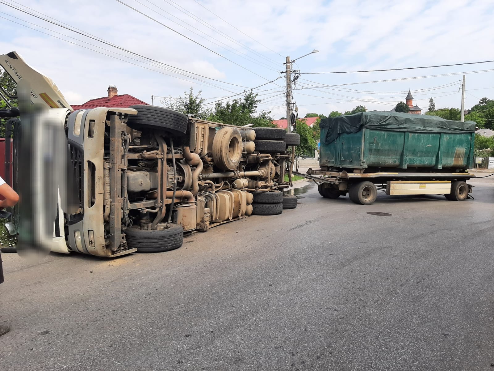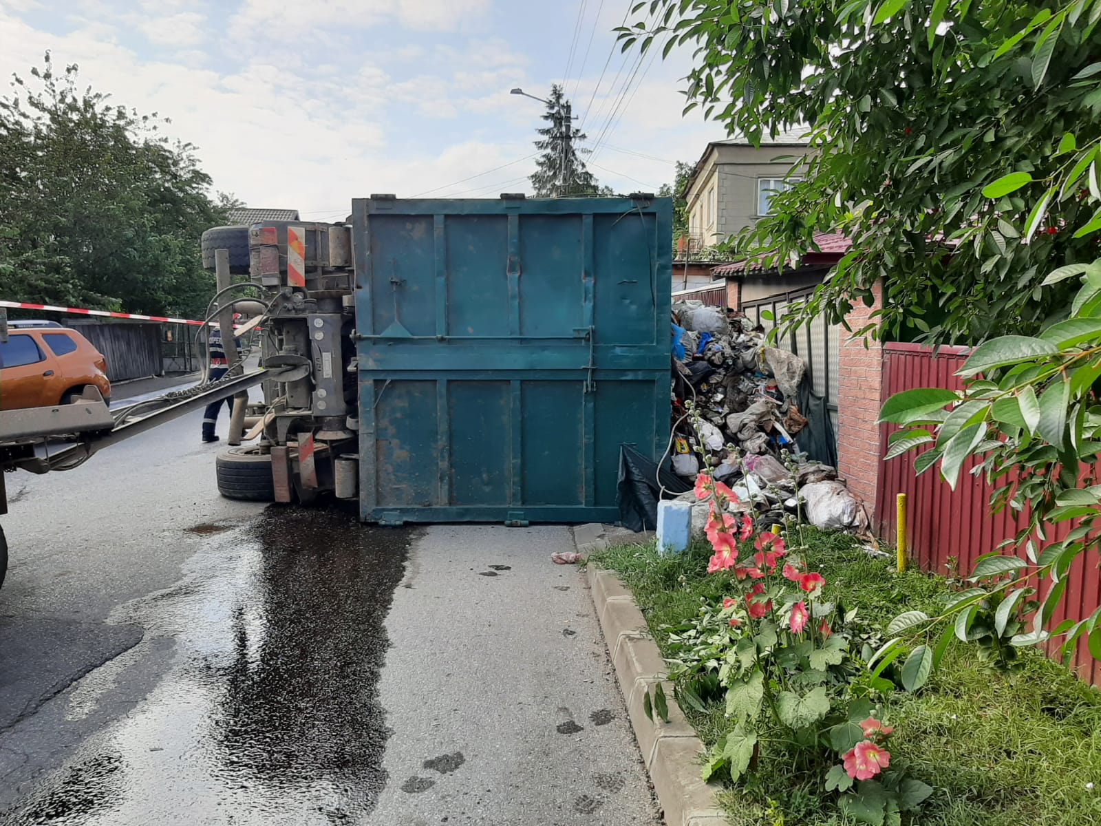 Un camion încărcat cu gunoi s-a răsturnat pe o stradă din municipiul Dorohoi și s-a oprit lângă gardul unei gospodării. Evenimentul a avut loc în miercuri dimineață.