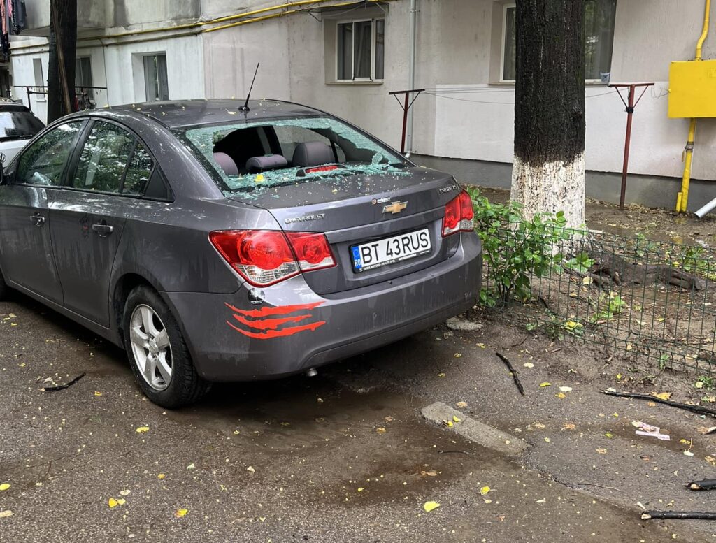 FOTO Mașină avariată de o creangă de copac, pe o stradă din Botoșani