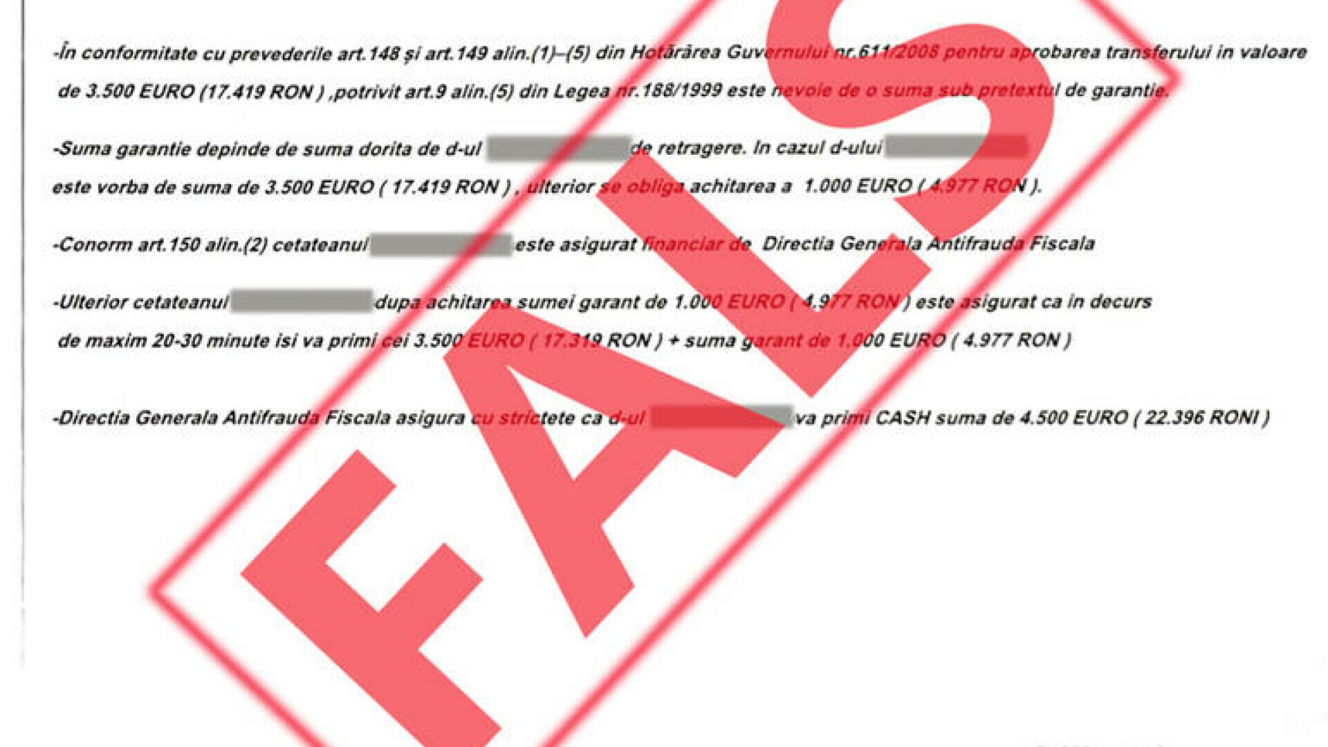 O tentativă de înşelăciune în numele Direcţiei Generale Antifraudă Fiscală a fost semnalată, după ce mai multe persoane au reclamat că au primit e-mailuri prin care li se cere plata unei garanţii de 1.000 de euro pentru a beneficia de o sumă de bani, anunţă Agenţia Naţională pentru Administrare Fiscală (ANAF).