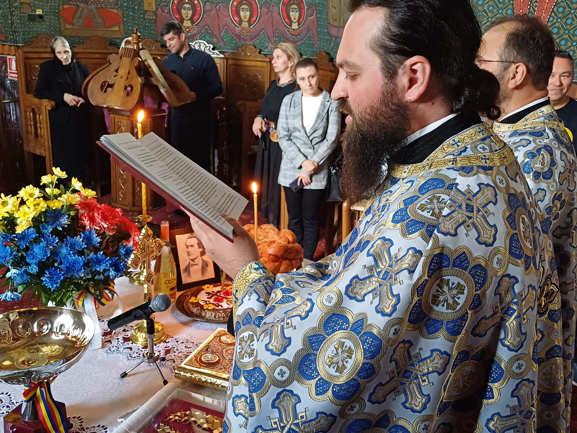 „În conștiința poporului român, aș vrea să pun la inimă ceea ce spunea episcopul Gherasim Putneanul: dacă atunci când ne gândim la familie și la social ne gândim la termenul de mamă, atunci când ne gândim la neam ne gândim la român și atunci când ne gândim la literatură ne gândim la Eminescu”, a spus preotul bisericii.