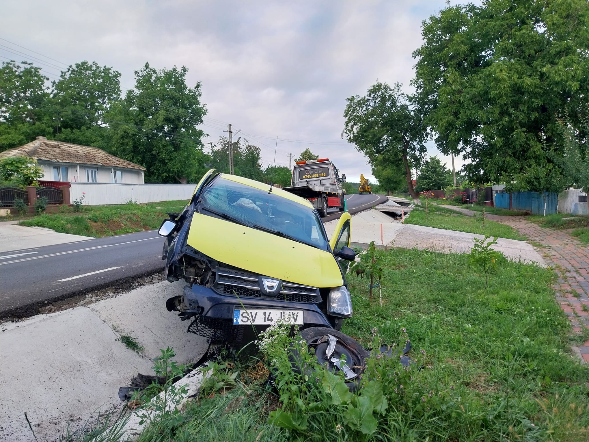 Mașina s-a izbit într-un cap de pod și apoi a rămas blocată în șanț. La fața locului au ajuns cadrele medicale, care au preluat-o pe victimă, o femeie de 48 de ani, și au transportat-o la spital.