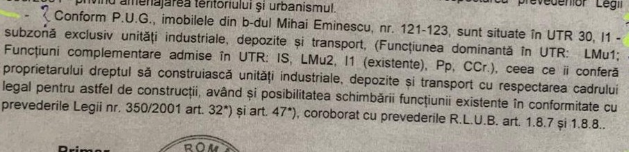 Astfel, printr-o adresă transmisă de Primăria Botoșani în ianuarie 2019, se menționează clar că zona este una rezidențială doar pentru construcții case, iar într-o altă adresă, transmisă în iunie 2024 se arată că parcela respectivă este zonă industrială, în contradicție cu PUG.