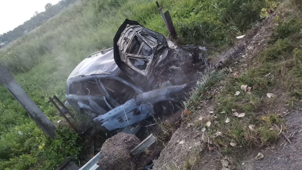 FOTO Accident, azi dimineață, într-o localitate din Botoșani. O mașină a luat foc, iar șoferul a ajuns la spital