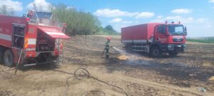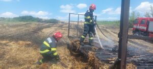 Peste cinci tone de furaje, o platformă auto și aproximativ 1000 de metri pătrați de vegetație uscată au ars, joi, pe un câmp din localitatea Buzeni. Cel mai probabil, incendiul a fost generat de scântei mecanice provenite de la un utilaj agricol folosit pentru formarea baloților de paie.