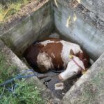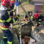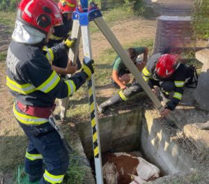 Rămasă captivă într-un cămin de apă din beton, o bovină a fost salvată de pompierii botoșăneni. Animalul a căzut în groapa adâncă de aproximativ doi metri, iar localnicii au încercat să îl ajute pe proprietar să o scoată din captivitate. Eforturile lor au fost zadarnice, motiv pentru care au sunat la 112.