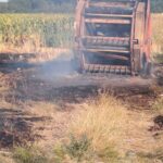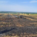 Patru hectare de grâu netreierat, două hectare de miriște, paie și o balotieră au ars, luni seară, pe un câmp din localitatea Miorcani. Cel mai probabil, incendiul a fost generat de un scurtcircuit produs la utilajul agricol folosit pentru formarea baloților de paie.