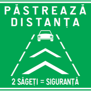 În partea de sus scrie „PĂSTREAZĂ DISTANȚA”, iar în partea de jos „2 SĂGEȚI = SIGURANȚĂ”.Acest indicator informează șoferii că trebuie să păstreze o distanță de cel puțin 2 săgeți față de mașina aflată în fața lor. Practic, regula celor „2 secunde”, predată la cursurile de conducere defensivă, devine obligatorie, prin lege.