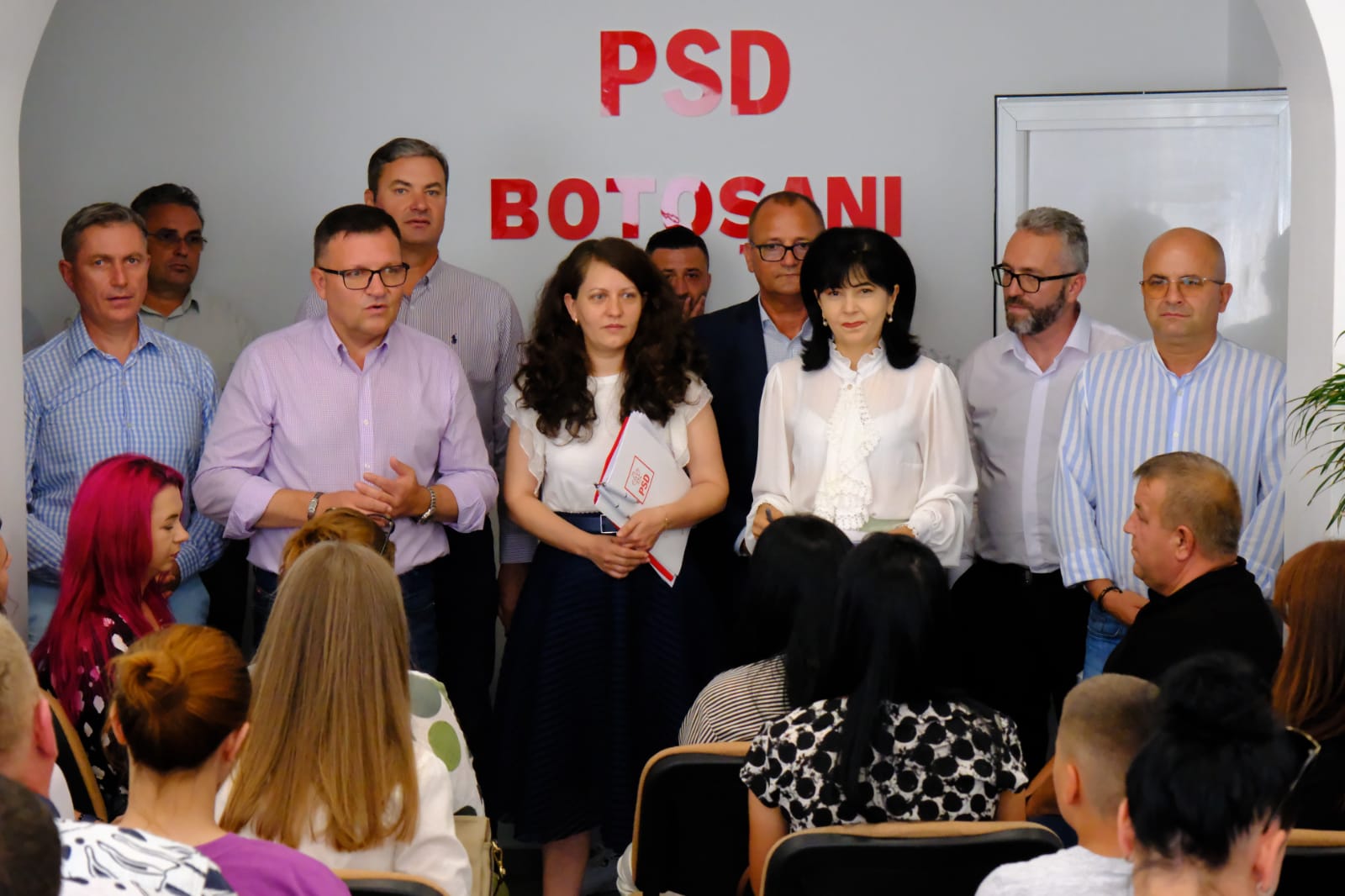 Vineri, la sediul PSD Botoșani, în prezența președintelui organizației județene Doina Federovici, a parlamentarilor Marius Budăi, Alexandra Huțu, Dan Șlincu, Trufin Lucian, a vicepreședintele CJ Dorin Birta și a conducerilor organizațiilor locale, noii membri și-au expus pe scurt motivele care i-au determinat să semneze adeziunile și să se implice în PSD.