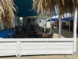 Plaja este generoasă, iar nisipul merge pe o distanță destul de mare sub apă, astfel că este un loc preferat de familiile cu copii. Nu există însă amenajări turistice în zonă, în afara unei terase (cu băuturi și mâncare), pentru că este o arie protejată.