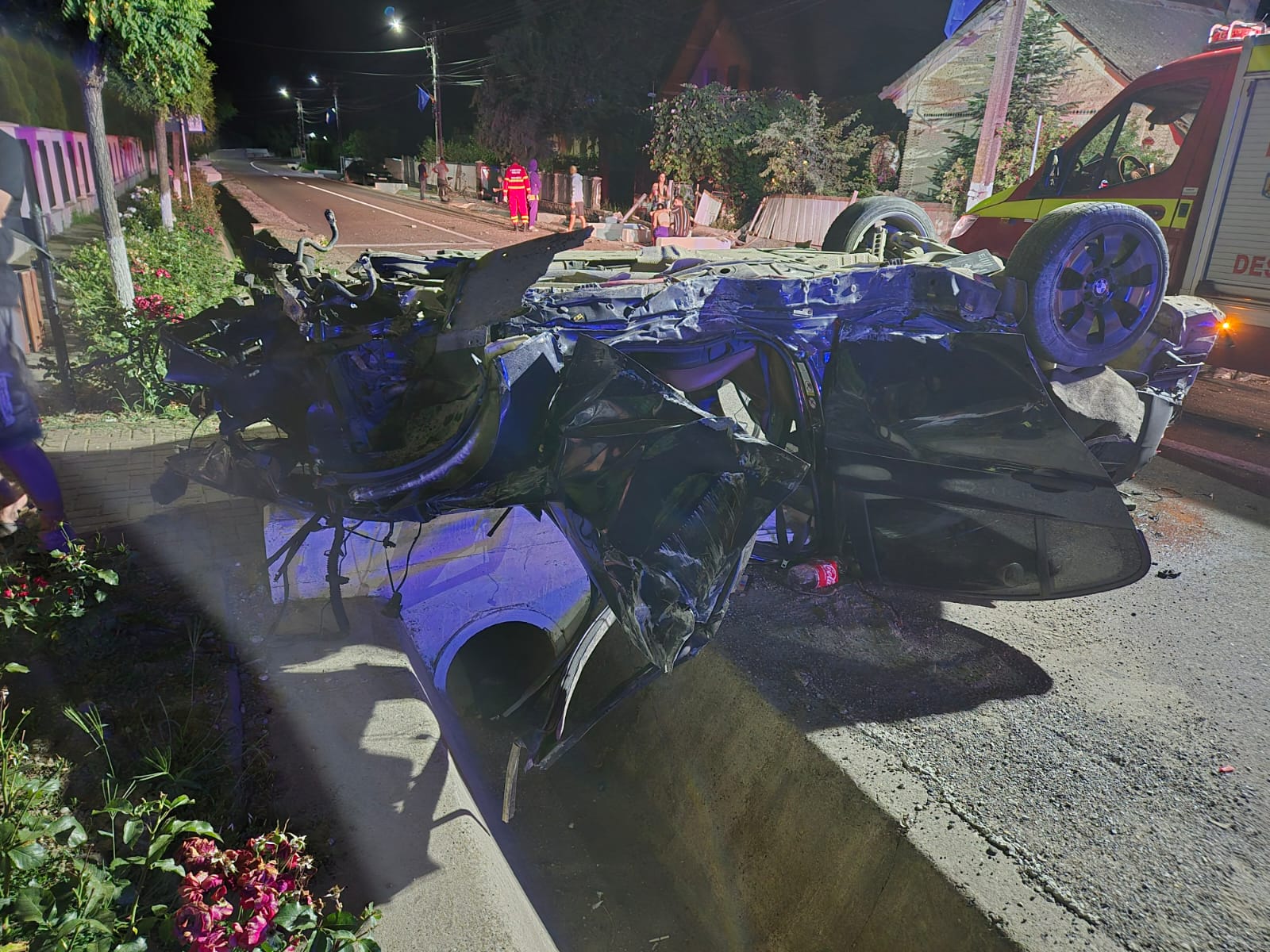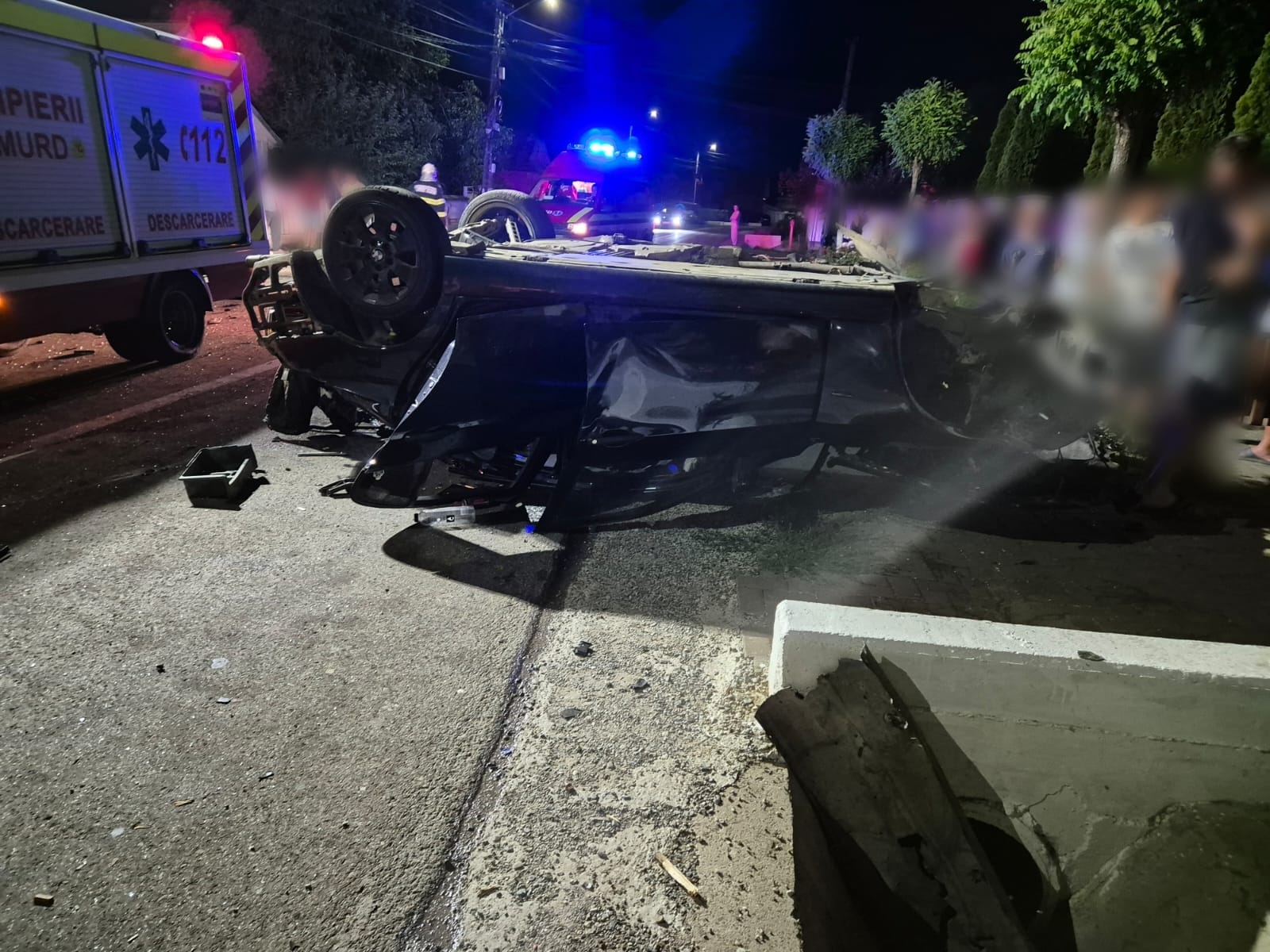 La fața locului, au intervenit pompierii militari cu o autospecială pentru descarcerare și o ambulanță SMURD. La locul intervenției, au fost identificați doi tineri, în vârstă de 18 ani, cu diverse plăgi și escoriații minore. Cei doi erau conștienți și cooperanți (pe picioarele lor).