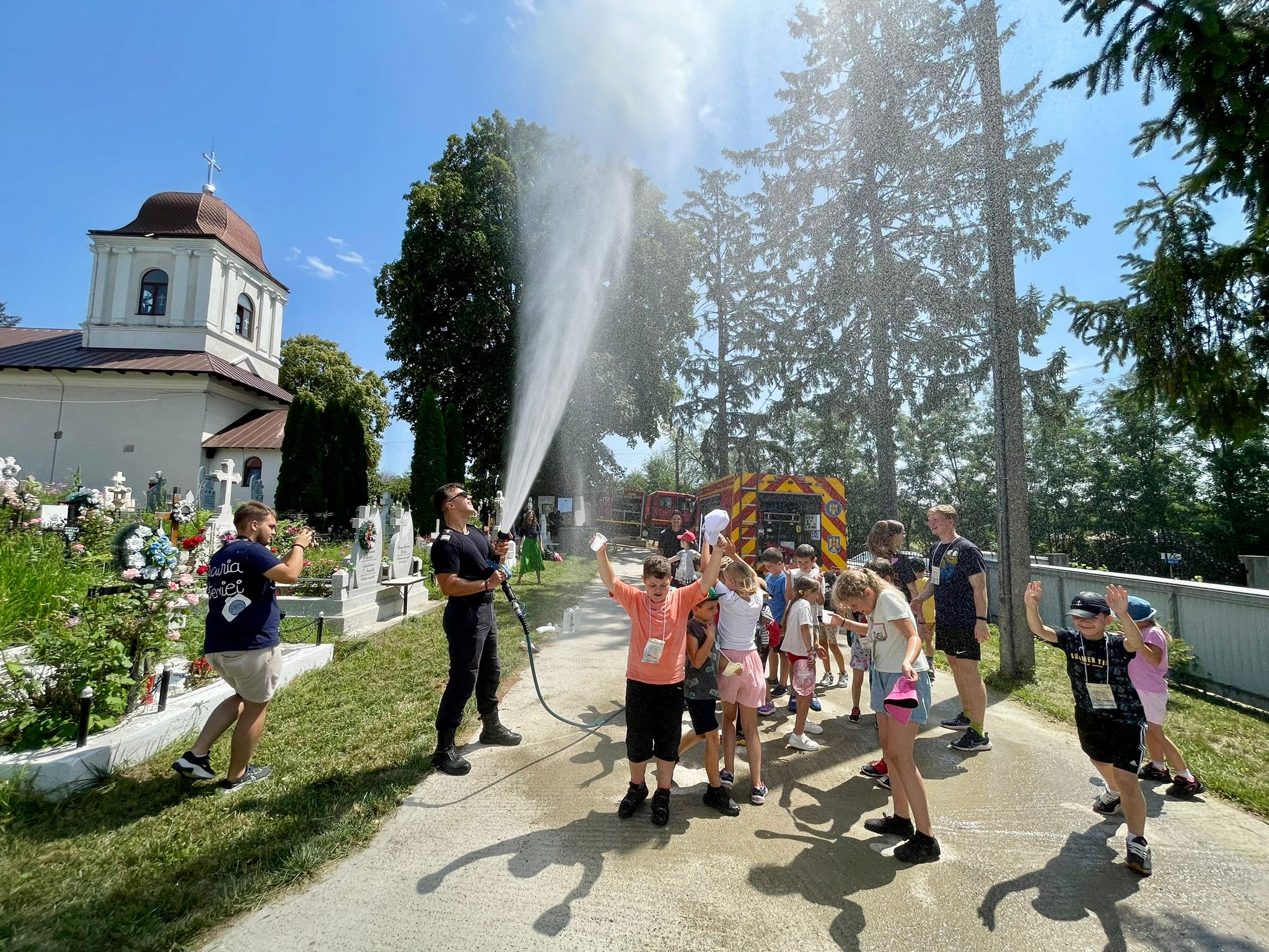FOTO Peste 100 de copii și voluntari au petrecut ziua alături de pompieri la Biserica “Adormirea Maicii Domnului” din Vorona
