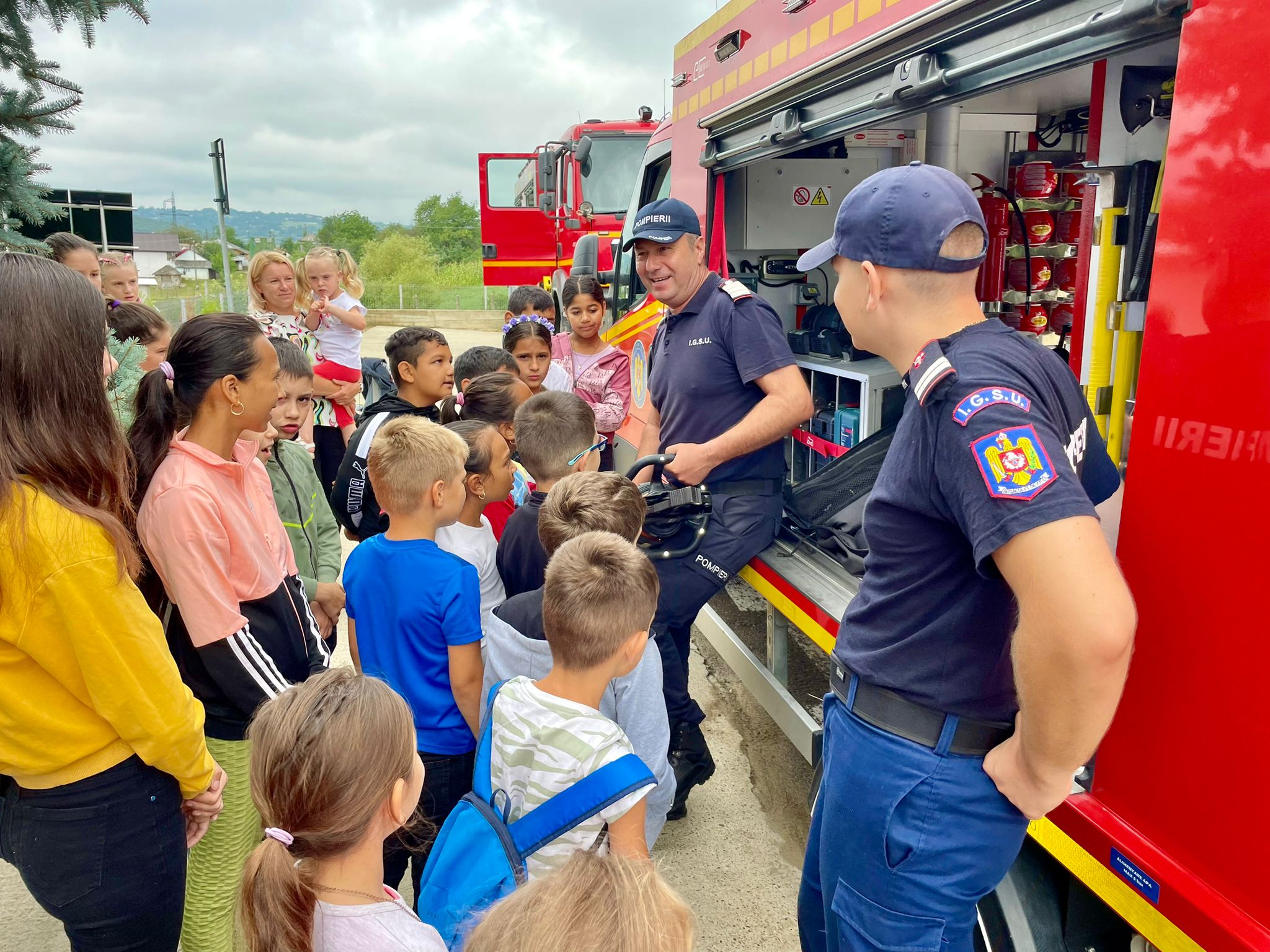 Salvatorii le-au vorbit celor 50 de copii, cu vârste cuprinse între 6și 17 ani, cum să-și protejeze propria viață, dar și cum să-și ajute semenii aflați în situații dificile. Le-au explicat riscurile la care se expun și i-au învățat cum să se comporte în diferite situații, fie că e vorba de incendii, inundații sau cutremur. Viteza, forța și rezistența le-au fost testate prin parcurgerea unui traseu aplicativ asemănător celui din concursul „Cel mai puternic pompier „. Cu această ocazie, pompierii le-au prezentat o autospecială de stingere, dar și una de descarcerare grea. Pe rând, au probat echipamentele de protecție folosite de salvatori pe timpul misiunilor și au testat presiunea furtunelor pentru lichidarea unui incendiu.