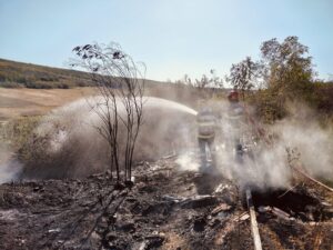 Un puternic incendiu a avut loc luni după-amiază în apropierea localității Jijia, din comuna Albești, unde au intervenit pompierii din cadrul Gărzii de Intervenție Trușești. Din cauza reliefului accidentat, salvatorii nu au putut ajunge cu autospeciala în apropierea focarului, fiind nevoiți să creeze un dispozitiv de intervenție prin curțile localnicilor pentru a opri propagarea flăcărilor la gospodăriile din apropiere și la biserica veche a satului.