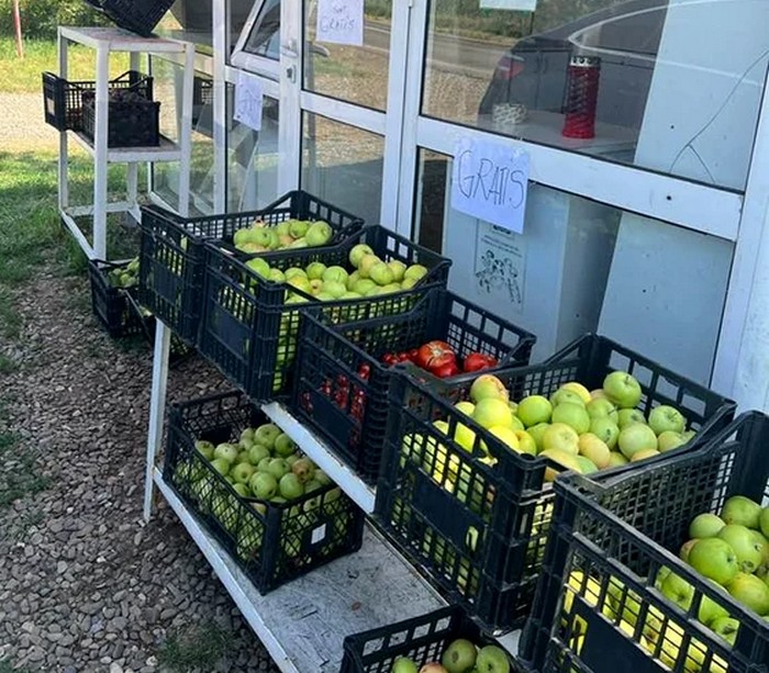 Dumitru Zmău, fost șef al Poliției Rutiere din Botoșani iar după pensionare acum mai bine de 12 ani, s-a apucat de pomicultură. Mai precis, și-a făcut o livadă impresionantă întinsă pe câteva hectare, în localitatea Cucorăni, comuna Mihai Eminescu și vindea producția, mai ales la un chioșc din apropierea proprietății, pe drumul național ce duce de la Botoșani la Dorohoi. În paralel se ocupă și cu legumicultura, la fel comercializând produsele obținute. Acum aproximativ o săptămână, cei care tranzitează acest drum și cunoscu bine aprozarul din fața livezii lui Zmău, au avut surpriza să constate că toate fructele adunate în lăzi era oferite gratis trecătorilor. Mai precis, pe chioșcul respectiv erau lipite anunțuri pe care scria ”gratis„ în dreptul fructelor și legumelor.
