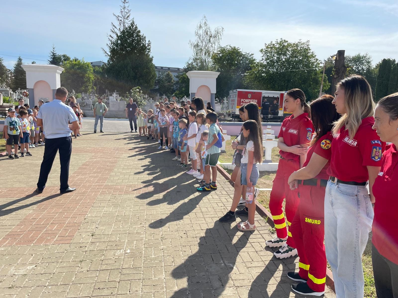 Pompierii botoșăneni au continuat acțiunile de informare și educare preventivă în școlile de vară, organizate de preoți. Astăzi, s-au întâlnit cu cei peste 80 de copii înscriși la școala de vară organizată de Parohia Pacea din municipiul Botoșani.