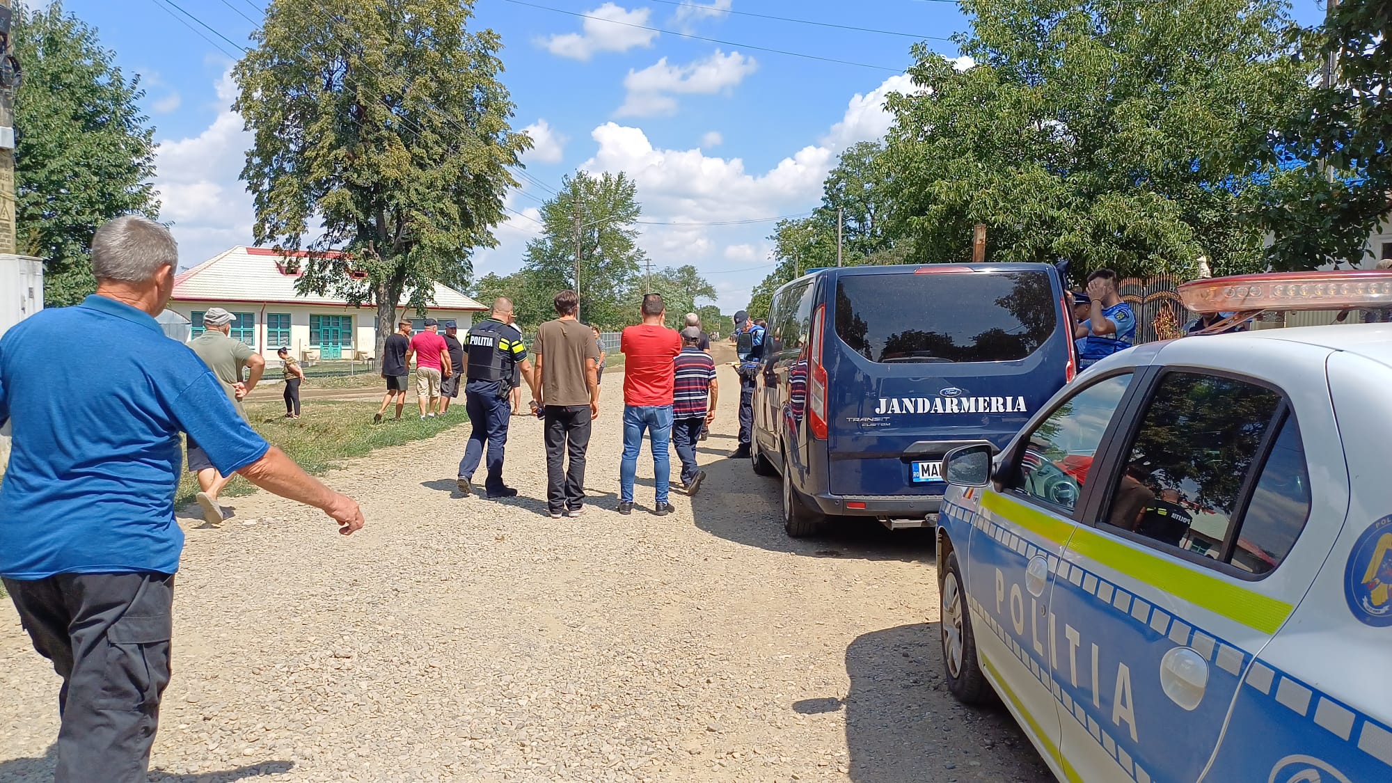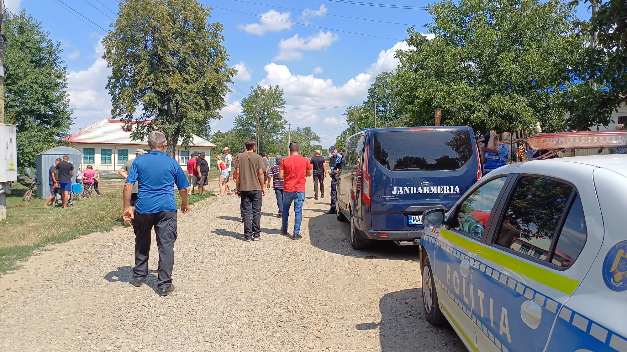 Păziți de jandarmi și polițiști, localnicii din Icușeni, comuna Vorona, s-au plâns de drumul distrus, dar și de faptul că terenurile lor au fost folosite ilegal pentru drum, pe unde trec camioanele.