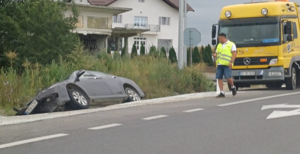 Un bărbat circula la volanul unui autoturism, iar într-o curbă la stânga a pierdut controlul și mașina a ajuns în șanț. Din fericire, accidentul nu s-a soldat cu victime, ci doar cu pagube materiale.
