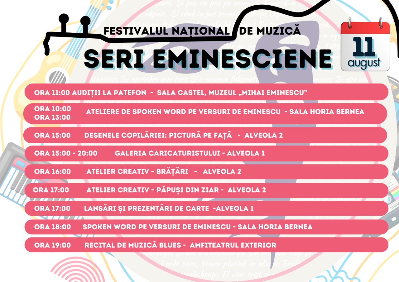 Spre deosebire de Festivalul de Folk, așa cum precizează și denumirea actuală a festivalului – Festivalul Național de Muzică Seri Eminesciene –, spectacolul a fost extins și spre alte genuri de muzică.