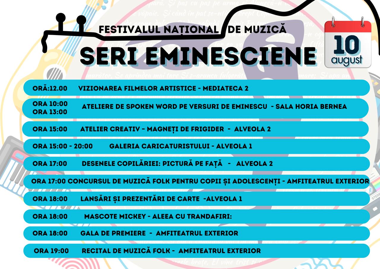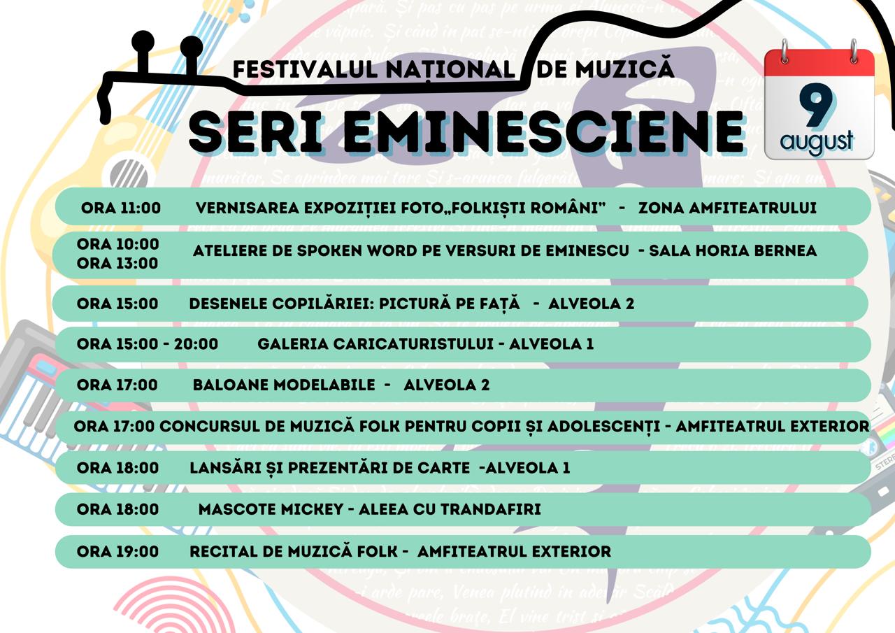 Într-o variantă mult extinsă, festivalul organizat de Memorialul Ipotești, în perioada 9-11 august 2024, Seri Eminesciene, se situează în continuarea Festivalului Național de Muzică Folk pentru copii și tineret Seri Melancolice Eminesciene.