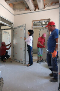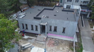 Lucrările de construire a Laboratorului de microbiologie se apropie de final. Constructorul mai are de finalizat la finisajele interioare (gleturi, realizarea șapelor autonivelante, punerea linoleumului antibacterian și a tapetului pe pereți) și la realizarea tencuielii decorative pe exterior.